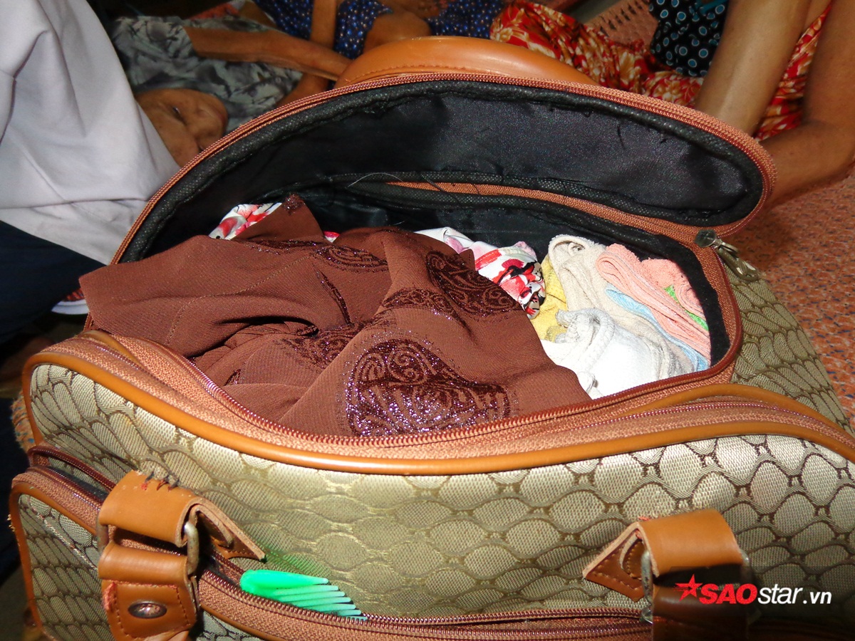 Trong suốt buổi trò chuyện với chúng tôi, cụ cứ ôm khư khư túi đồ được cháu gái gói ghém như một tài sản quý. Hết soạn quần áo ra, cụ lại cất vào, thỉnh thoảng lại ngẩng lên hỏi hang mọi người xung quanh: “Ở đây có kim chỉ không cô, tui thay thun lưng quần được một nửa rồi, tụi nó không gói theo dụng cụ để tôi làm tiếp. Cái quần này dày dặn nên tôi thích mặc”.
