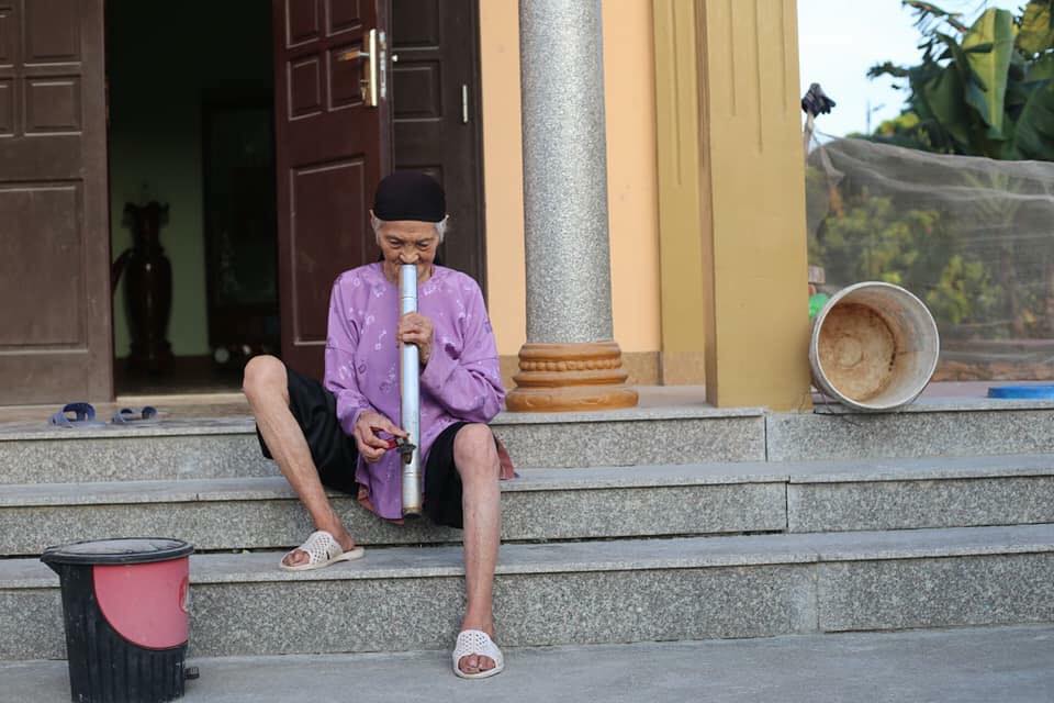 Cụ bà 93 tuổi vẫn hút thuốc lào như 1 thói quen hằng ngày.