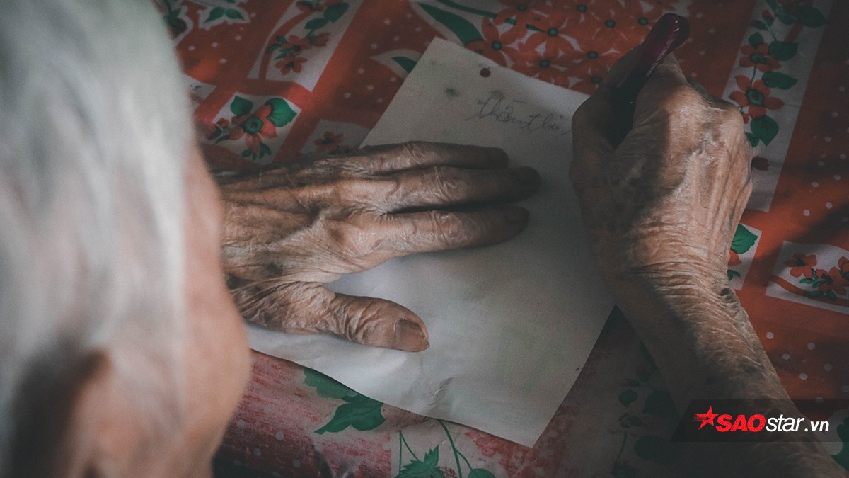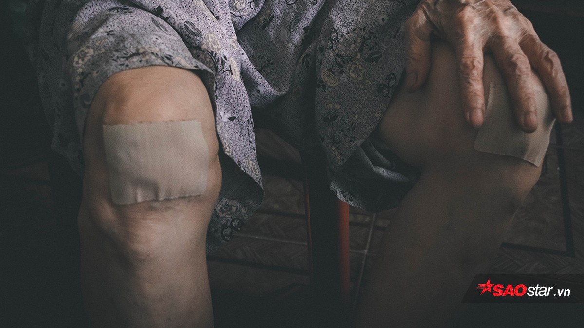 Tay chân đau nhức phải bóp thuốc nhưng cụ bà vẫn không ngại việc chung của xóm làng.