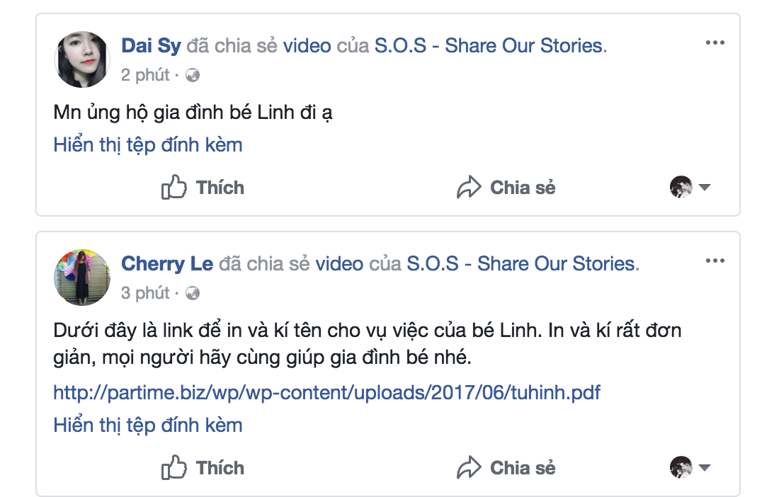 Các fanpage lớn đồng loạt kêu gọi các thành viên chia sẻ và ký tên giúp đỡ gia đình bé Nhật Linh.
