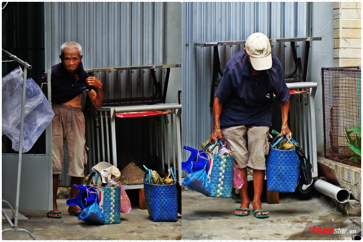 Và cứ thế đều đặn mỗi ngày, cứ khoảng 11g, 12g trưa cụ lại khệ nệ hai tay hai giỏ bánh gồm 40 chiếc bánh ú và 4,5 đòn bánh tét được đại lí giao đến tận nhà. Mỗi cái bánh ú có giá vốn là 8.000 đồng, cụ thường bán ra với giá 10.000 đồng, hay có hôm gặp “mối sộp” chịu mua đến 15.000 đồng/cái. Nhờ vậy mà cụ có thêm khoản tiền mua chút rau, chút cá cho bữa cơm cả nhà. “Dạo gần đây, mỗi ngày tôi chỉ thu về được 100.000 đồng đến 120.000 đồng vì đâu còn được khỏe mạnh dẻo dai mà xách nặng như trước. Trước đây tôi xách mỗi tay hơn chục kg bánh mà đi ngon ơ, giờ độ trăm mét là phải dừng lại uống miếng nước, ngồi nghỉ bên đường.” - cụ trải lòng.