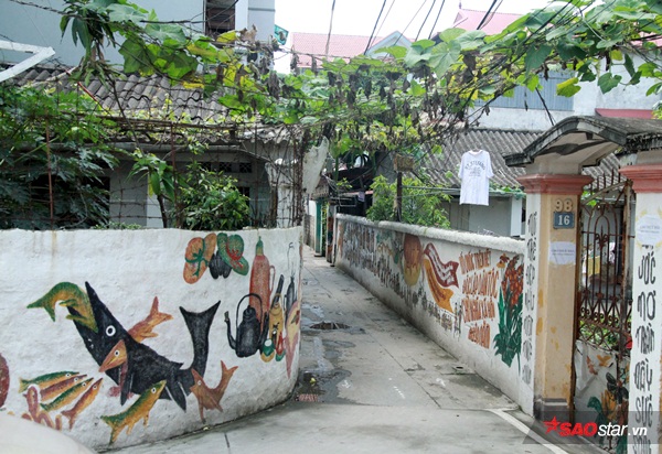 Cụ Thịnh đã tự tay tạo nên những bức tranh cho con hẻm mà mình sinh sống.