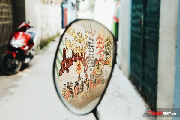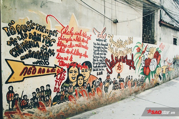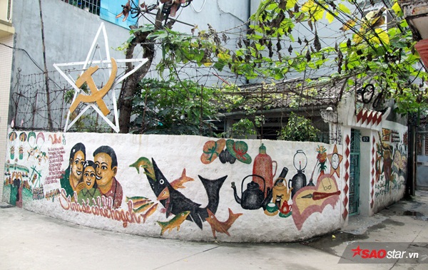 Khi đi qua những bức tường cũ kỹ, rêu phong và ẩm mốc của con ngõ nhà mình, cụ Thịnh đã nảy ra ý định làm mới chúng. Không chỉ dọn dẹp, quét vôi, cụ còn mua sơn và màu để vẽ lên chúng những bức tranh cổ động đầy màu sắc.