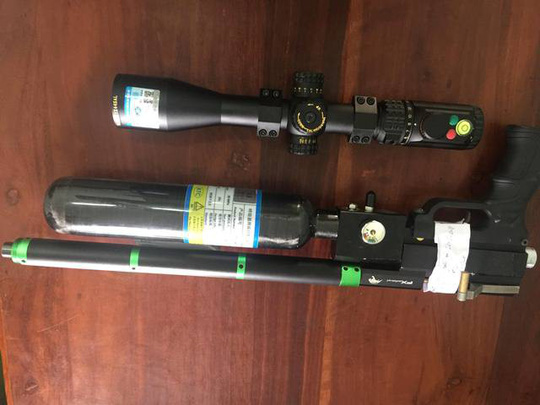 Nhóm thanh niên này mang theo một khẩu súng hơi, bắn đạn chì (xuất xứ Mỹ), 1 ống nhòm hiệu Sniper cùng với một số đạn chì dùng cho khẩu súng và để tại cốp sau của ô tô bên cạnh vị trí ngồi của Huy.
