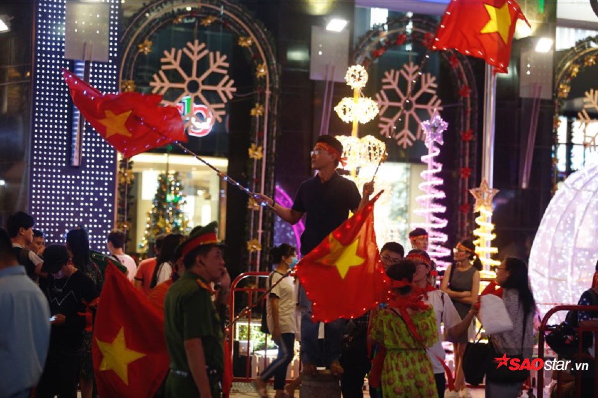 Rợp cả bầu trời là màu đỏ của cờ tổ quốc, băng rôn và khẩu hiệu: “Việt Nam vô địch!”