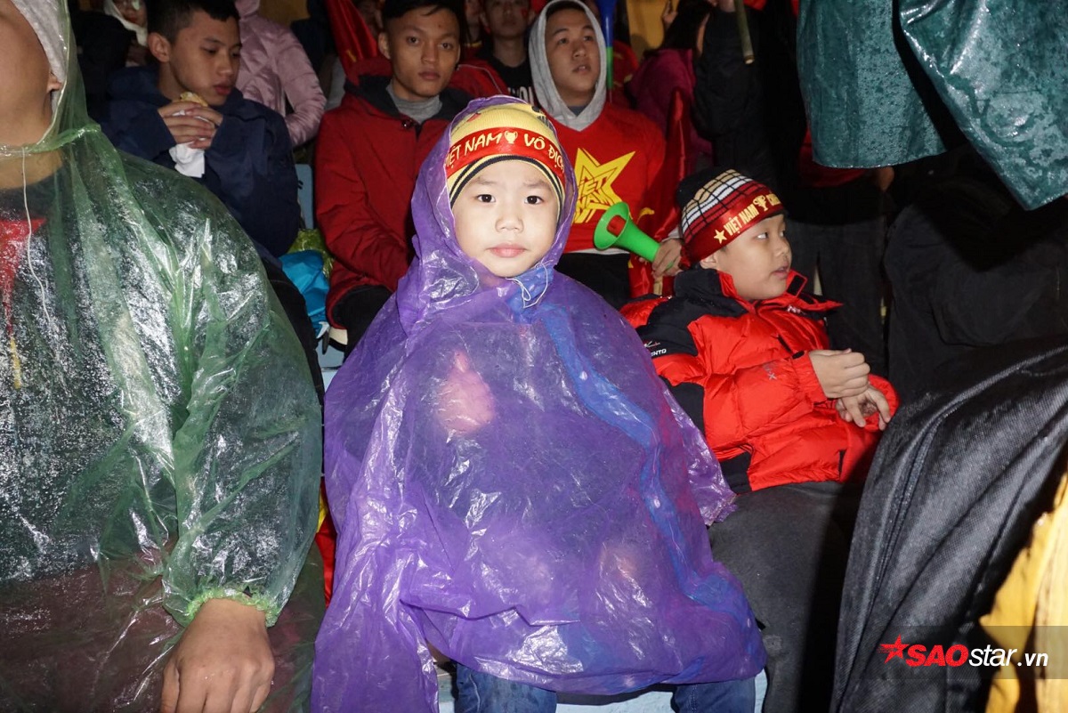 Dù mưa bẩn nhưng vẫn không làm nản lòng tinh thần cổ vũ bóng đá của những fans nhí như thế này.