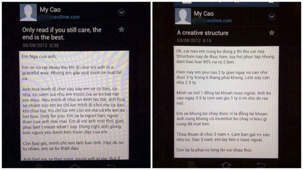 Khi ấy, hình ảnh 17 trang hợp đồng tình ái với những thoả thuận ghê rợn liên quan đến thú vui tình dục của Cao Toàn Mỹ gửi cho Phương Nga bị phát tán trên mạng. Mặc dù lúc đó và thậm chí là đến tận bây giờ, những trang hợp đồng tình dục đó vẫn còn là điều gây tranh cãi. Nhưng dư luận đã có phần “dịu” hơn với Phương Nga khi cho rằng cô đã chịu đựng thú vui tình dục bệnh hoạn của người đàn ông kia trong suốt nhiều năm tiền.
