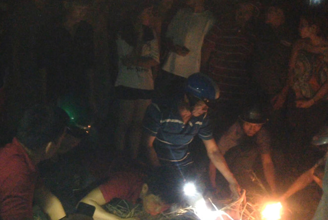 Người dân và lực lượng chức năng tổ chức tìm kiếm nạn nhân trong đêm. Ảnh: VTC.