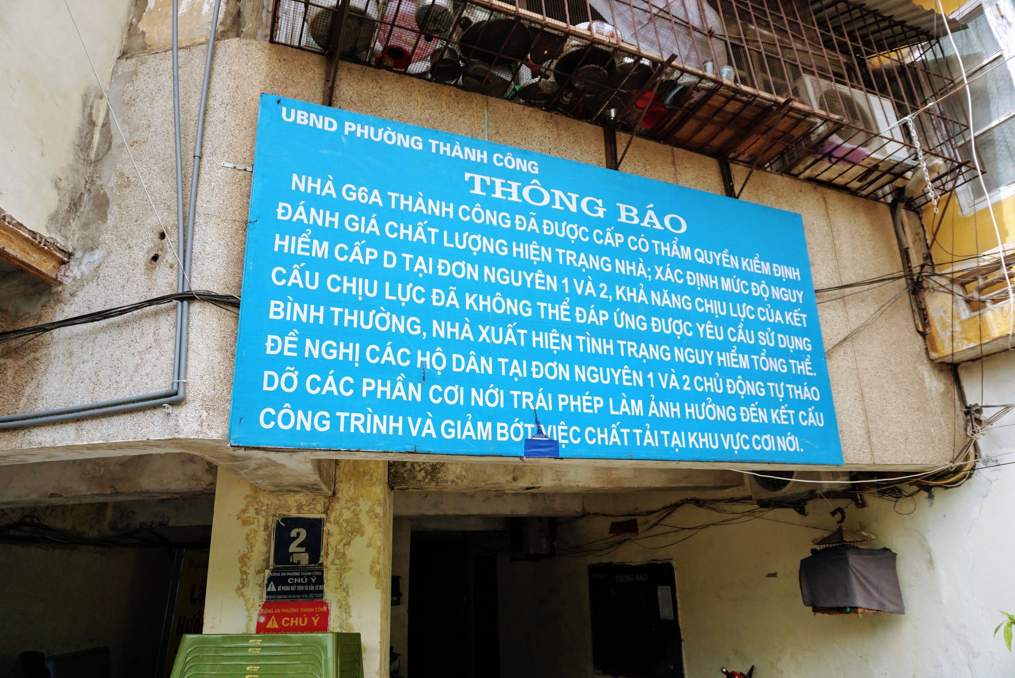 Chủ tịch UBND phường Thành Công cũng nhấn mạnh, về phía UBND phường cũng đã thành lập tổ công tác tuyên truyền, treo biển cảnh báo mức độ nguy hiểm của khu nhà tập thể nhưng một số người dân thiếu ý thức còn rạch nát biển thông báo.