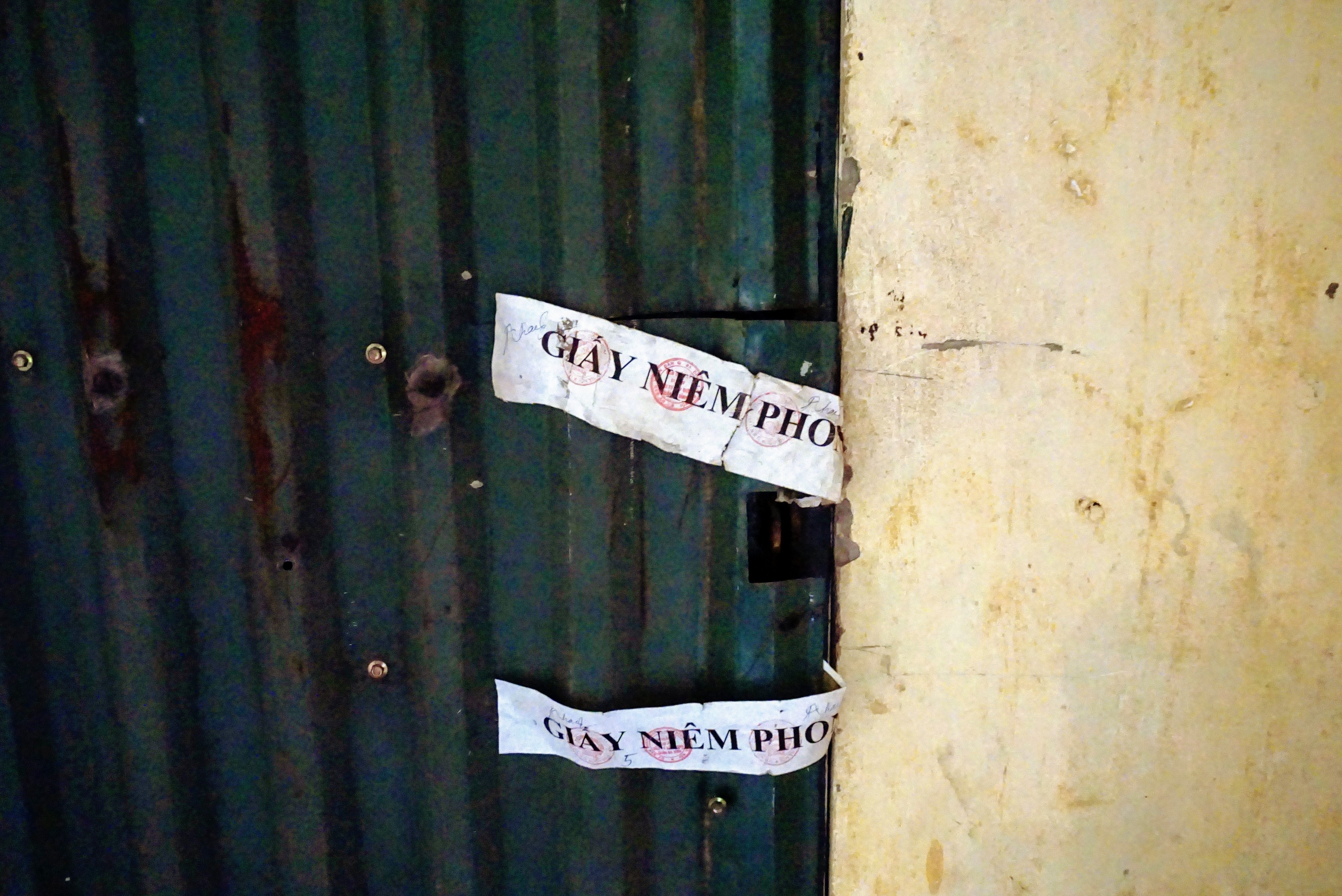 Những căn nhà mà chủ nhân của nó đã chuyển đi được dán giấy niêm phong.
