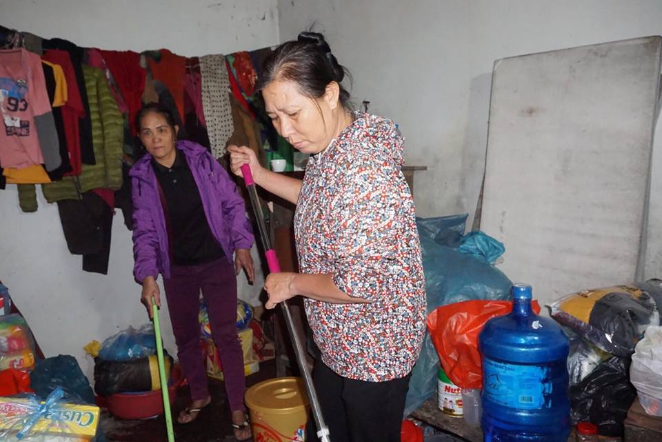 Nhiều người hàng xóm sang thu dọn nhà giúp.