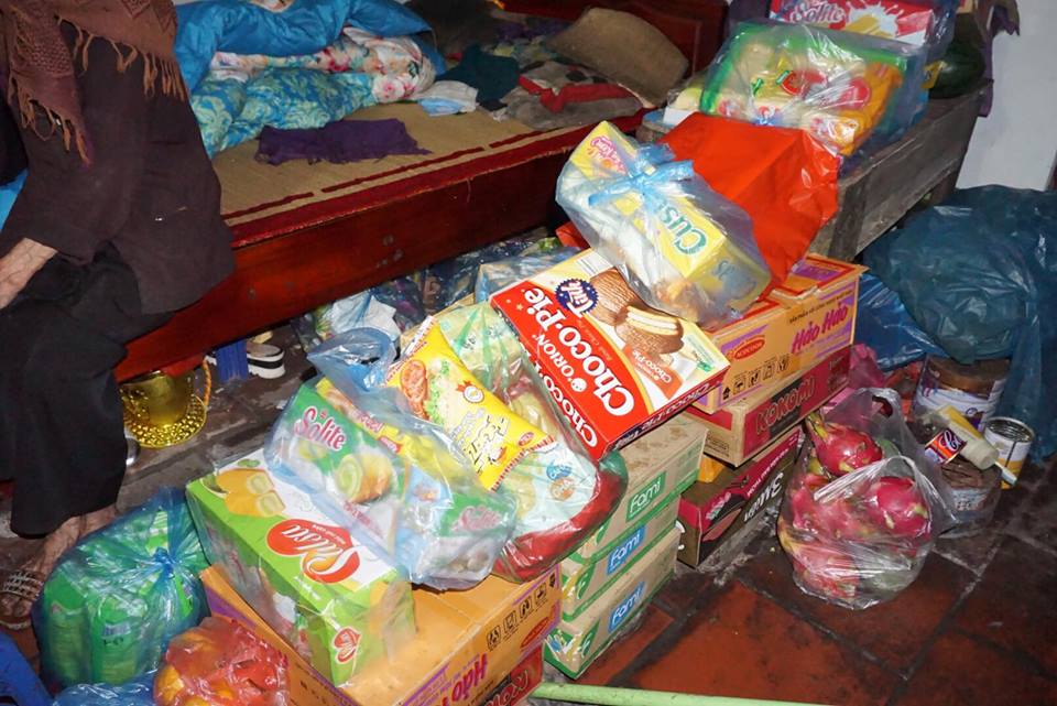 Mấy ngày qua rất nhiều tấm lòng hảo tâm đến mua bánh, sữa,… cho bà Hồ.