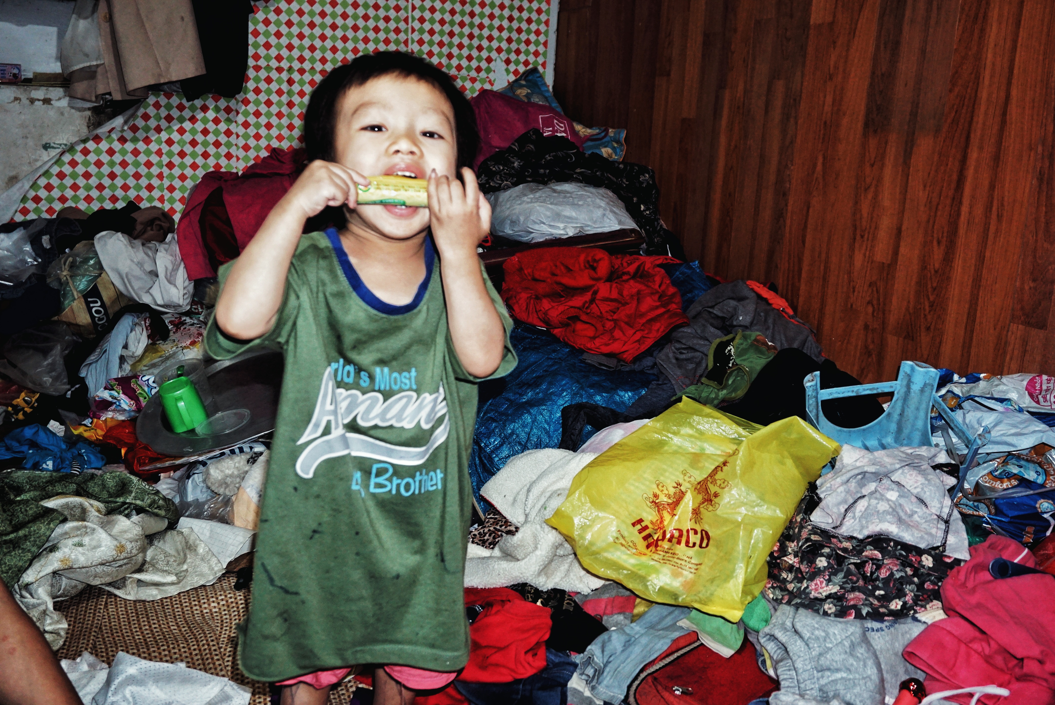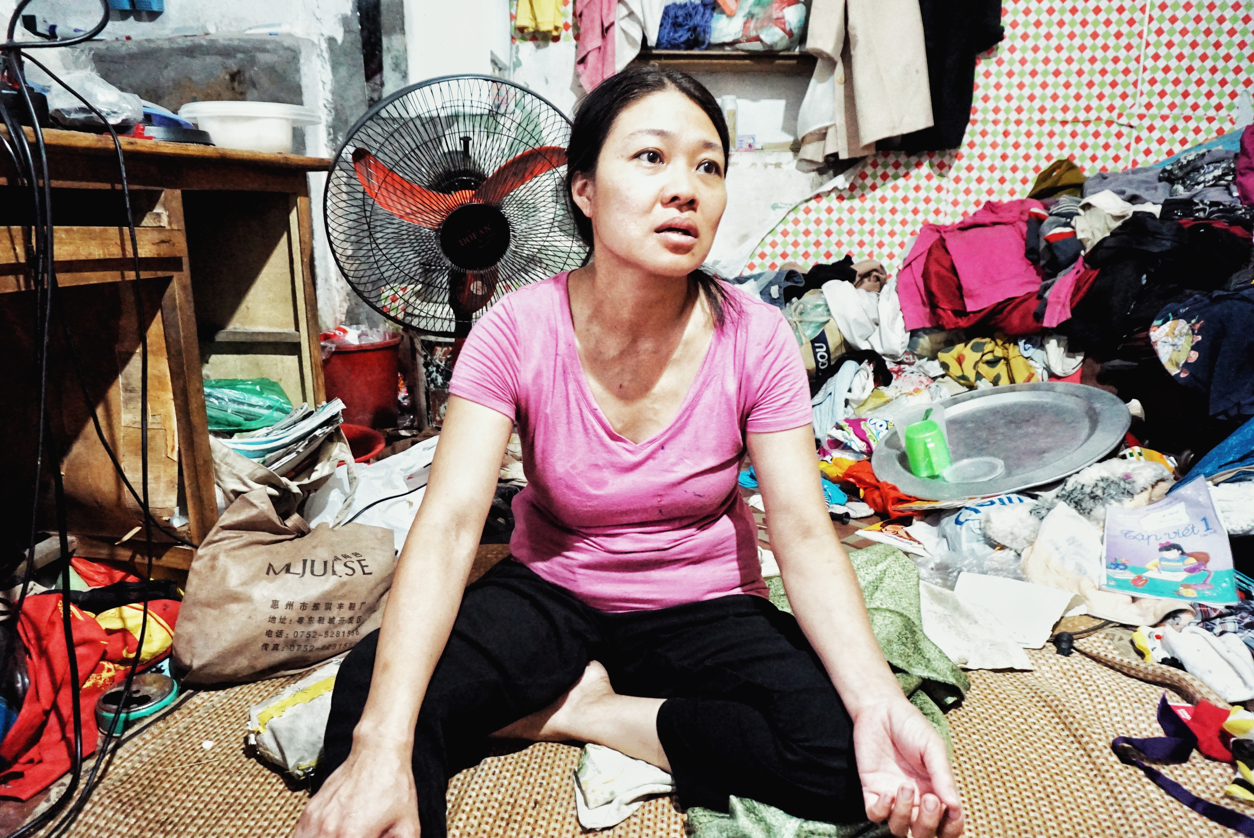 Nếu ai lần đầu bước vào đây có lẽ cũng sẽ nghĩ đây là nơi tập kết quần áo cũ chứ không phải là nơi ở của 1 người mẹ cùng 4 đứa con.