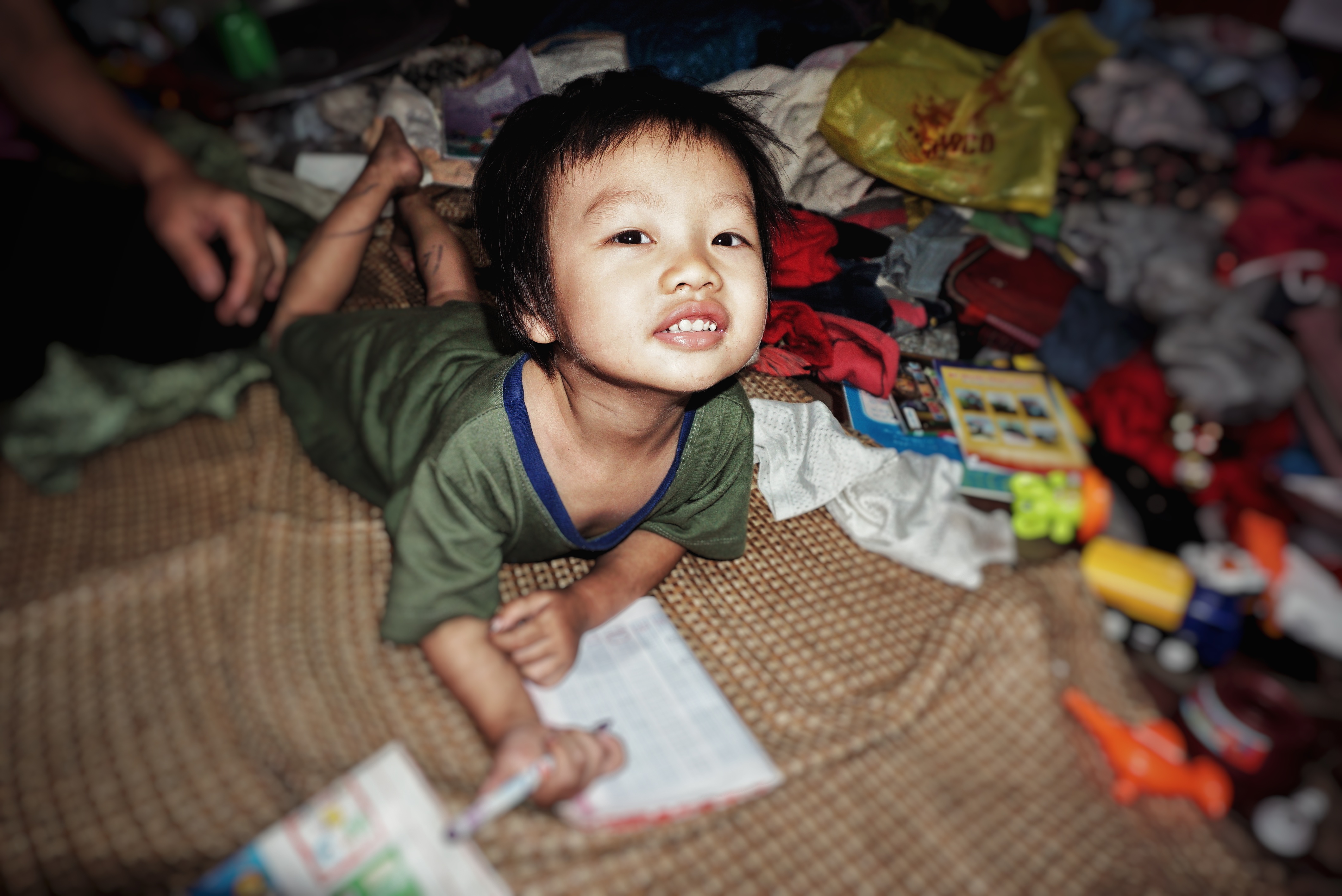 Bé trai là em của bé Hoàng Anh cũng lang bạt cùng mẹ ở nhiều khu ngõ thủ đô.