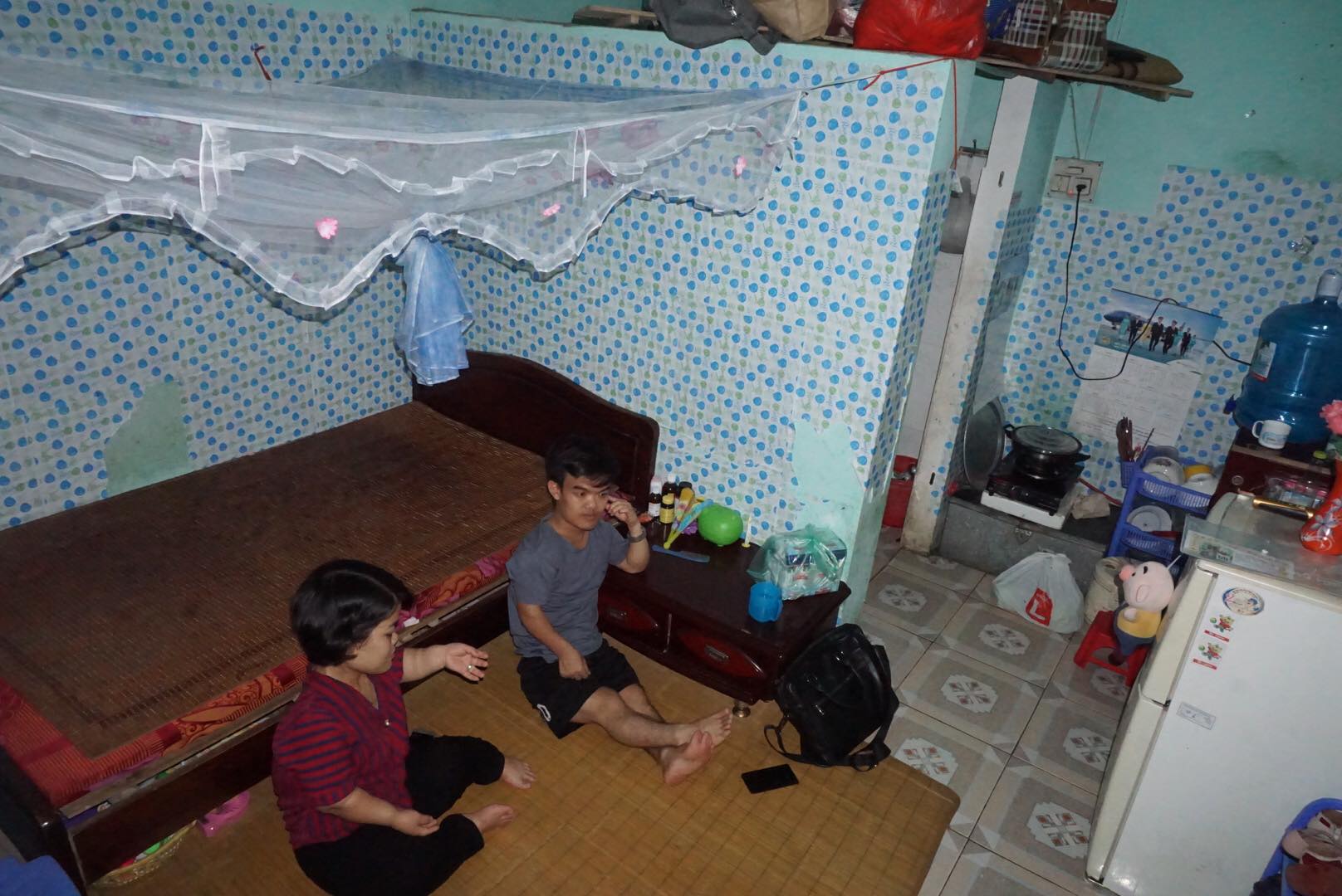 Trong ngôi nhà trọ lợp bằng mái tôn này là nơi vợ chồng Thịnh cùng người con gái năm nay gần 3 tuổi sinh sống. Cả Thịnh và Hậu chỉ cao khoảng 1m, thân hình nhỏ thó như đứa trẻ lên 5. Người dân xung quanh vẫn gọi vui là gia đình tý hon. Hàng ngày vợ chồng trẻ mưu sinh bằng việc bán hàng rong, tăm bông, kẹo cao su khắp các ngõ nhỏ ở Hà Nội.