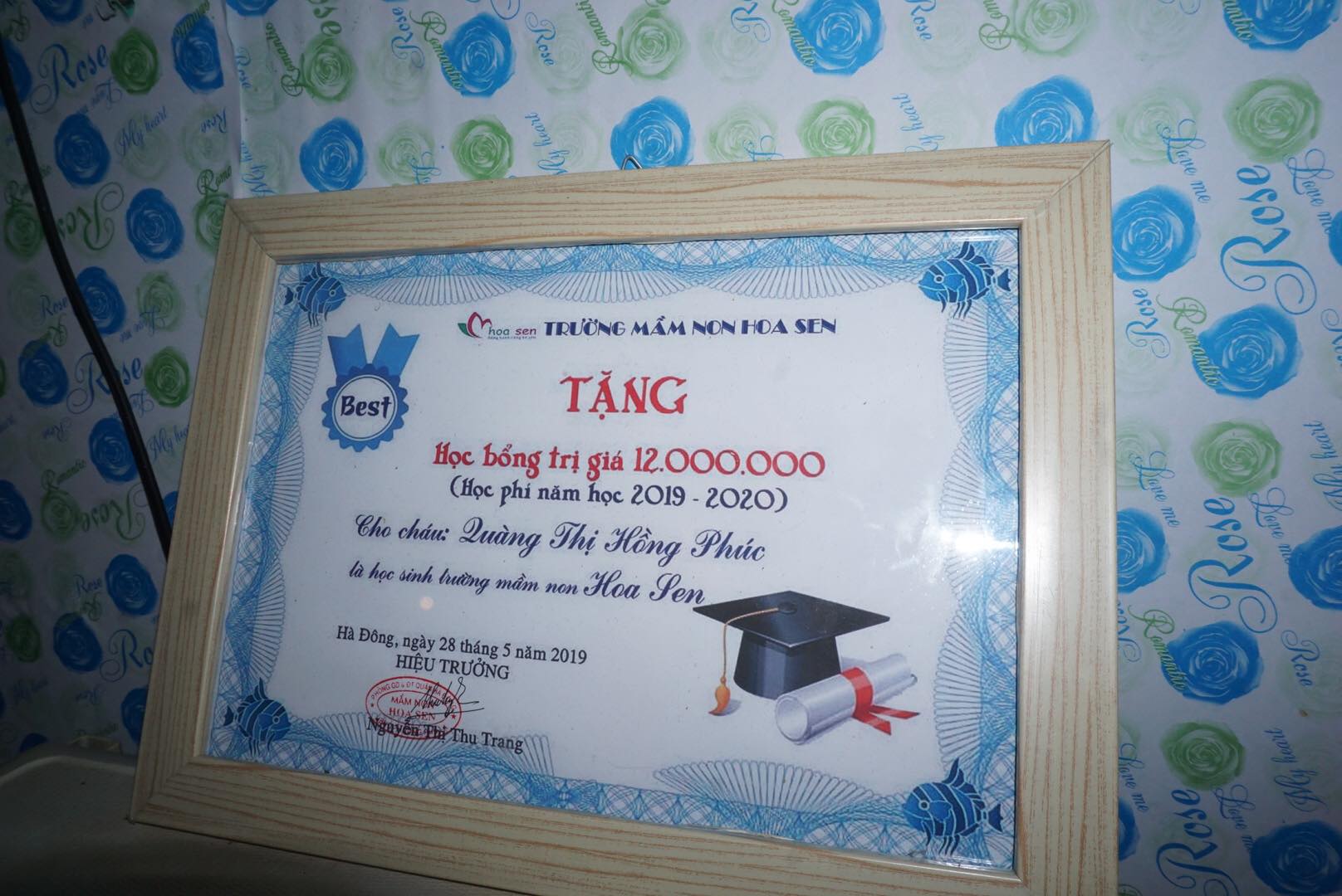 Bé cũng giành được học bổng của nhà trường.
