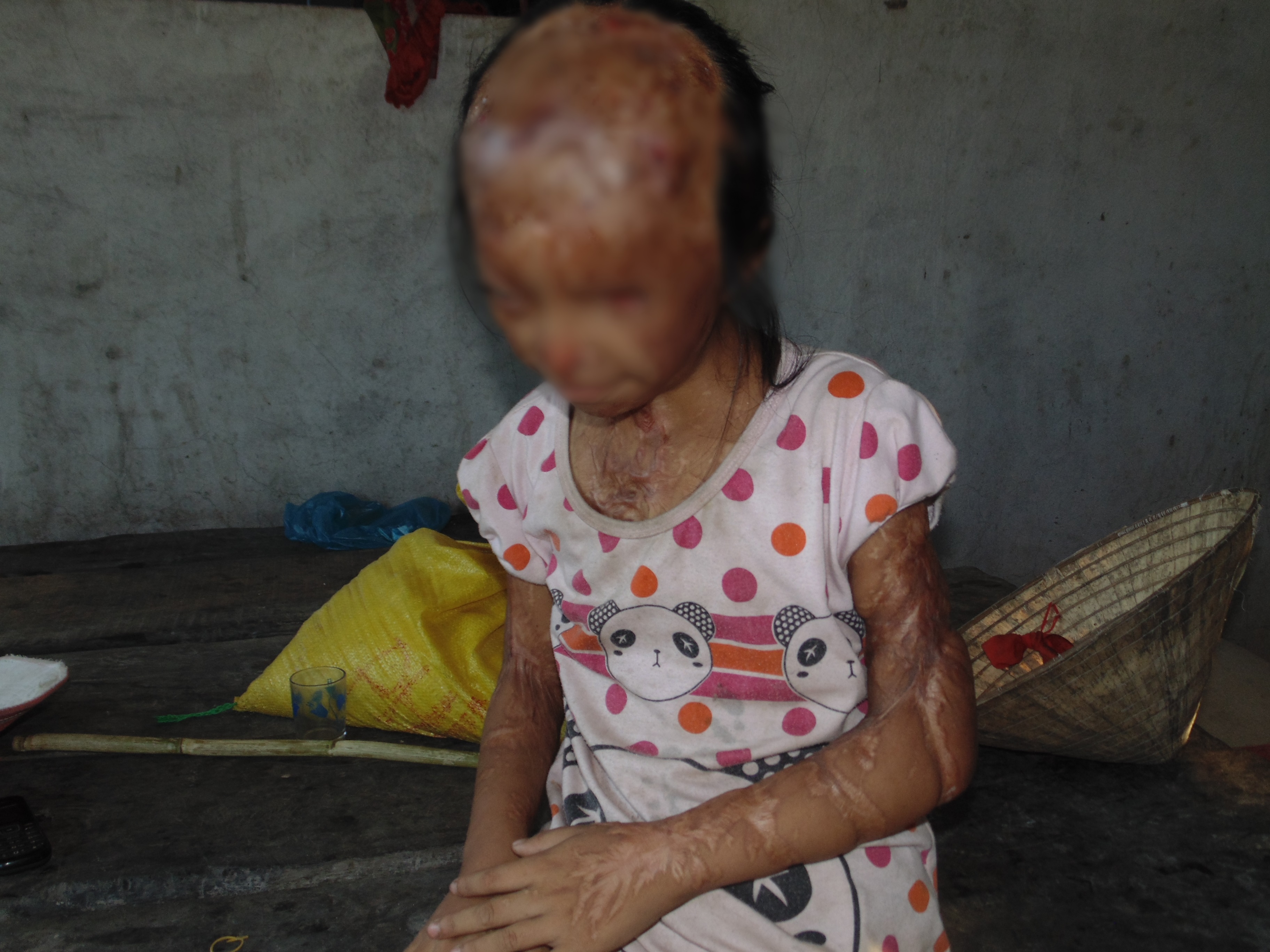 Lúc đó, mọi người cứ tưởng rằng Yến Nhi không thể sống nổi vì em bị bỏng tới 96%. Trên người, đầu chằng chịt vết thương, các cơ đều co lại khiến em thở và vận động khó khăn, khuôn mặt biến dạng. Gần 1 năm nằm viện điều trị, Nhi may mắn giữ được tính mạng, tuy nhiên đôi mắt của em bị mù hoàn toàn. Mẹ của Nhi bị nhẹ hơn nhưng cũng mang trên mình thương tích 81%.