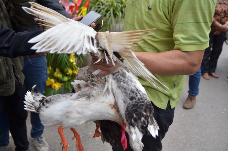 Anh Nguyễn Văn Đồ (tổ dân phố số 10) vui vẻ khi bắt được 3 con vịt. Ngoài phần thưởng bằng tiền mặt, người chơi còn được tặng những con vịt do chính mình bắt được.