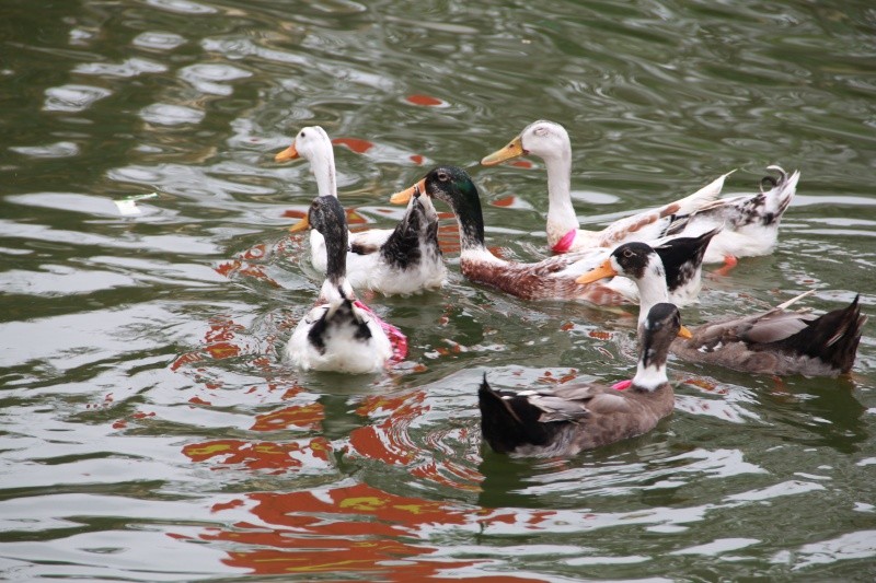 Khi thấy người tiến lại gần, đàn vịt rẽ nước tháo chạy.