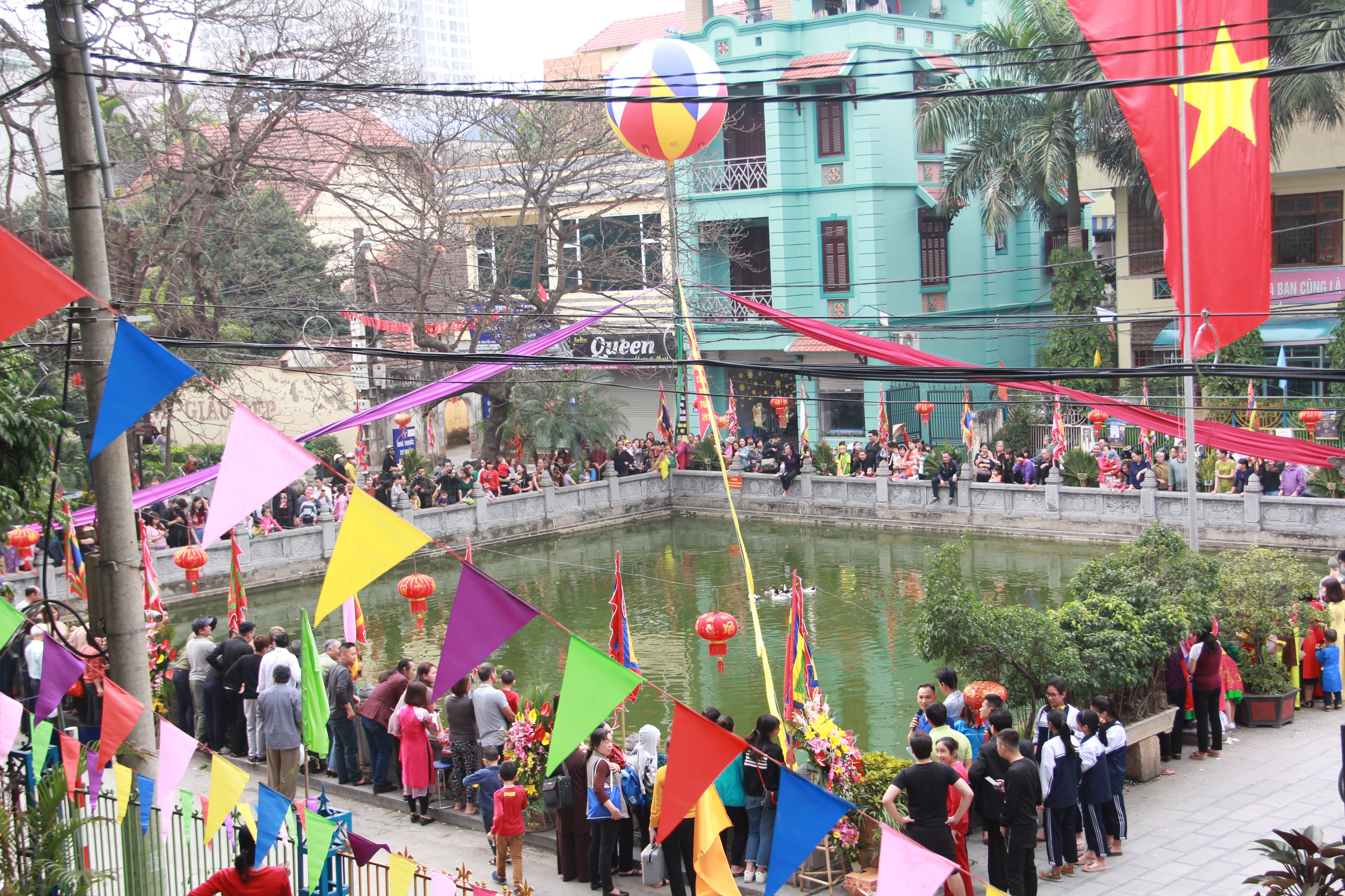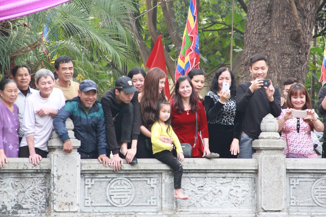 Chiều 28/2, hàng trăm người dan phường Vạn Phúc, quận Hà Đông, Hà Nội kéo nhau ra khu vực hồ nước trước đình Vạn Phúc để tham dự phần thi bắt vịt do đoàn thanh niên của phường Vạn Phúc tổ chức.