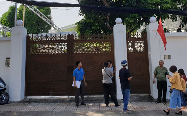 Căn biệt thự của bà Lê Hoàng Diệp Thảo đóng kín cửa, đoàn thi hành án không thể cưỡng chế. (Ảnh: Thanh Niên)