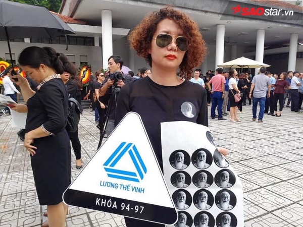 Dù bị đau mắt nhưng chị Đoàn Mai Chi - cựu học sinh khóa 1994-1997 vẫn đến để tiễn biệt thầy lần cuối. “Tất cả học cựu học sinh chúng tôi vô cùng thương tiếc trước sự ra đi của thầy. Thầy là người cha, người thầy mẫu mực mà chúng tôi luôn học hỏi suốt đời. Hôm nay, chúng tôi tập trung 100 cựu học sinh cùng khóa đến đây tiễn đưa thầy”, chị Chị chia sẻ.