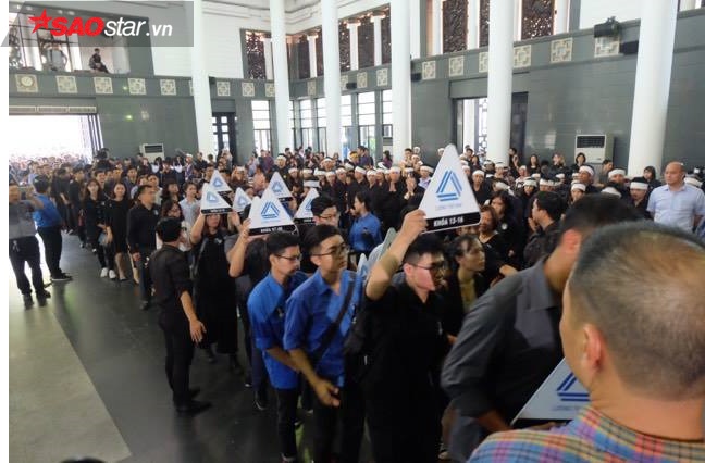 Dù chỉ ít phút sẽ hết giờ viếng nhưng dòng người càng về trưa càng xếp dài từ ngoài đường chính kéo dài tít sâu vào bên trong. Nhiều thế hệ học trò, những người dân không khỏi xúc động, đau buồn tiễn biệt thầy Cương lần cuối.