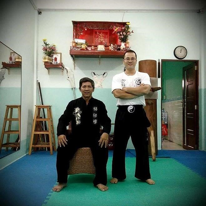 Võ sư Nam Nguyên Khánh (người ngồi) cho rằng chính đối thủ cố tình tung video để sỉ nhục ông.