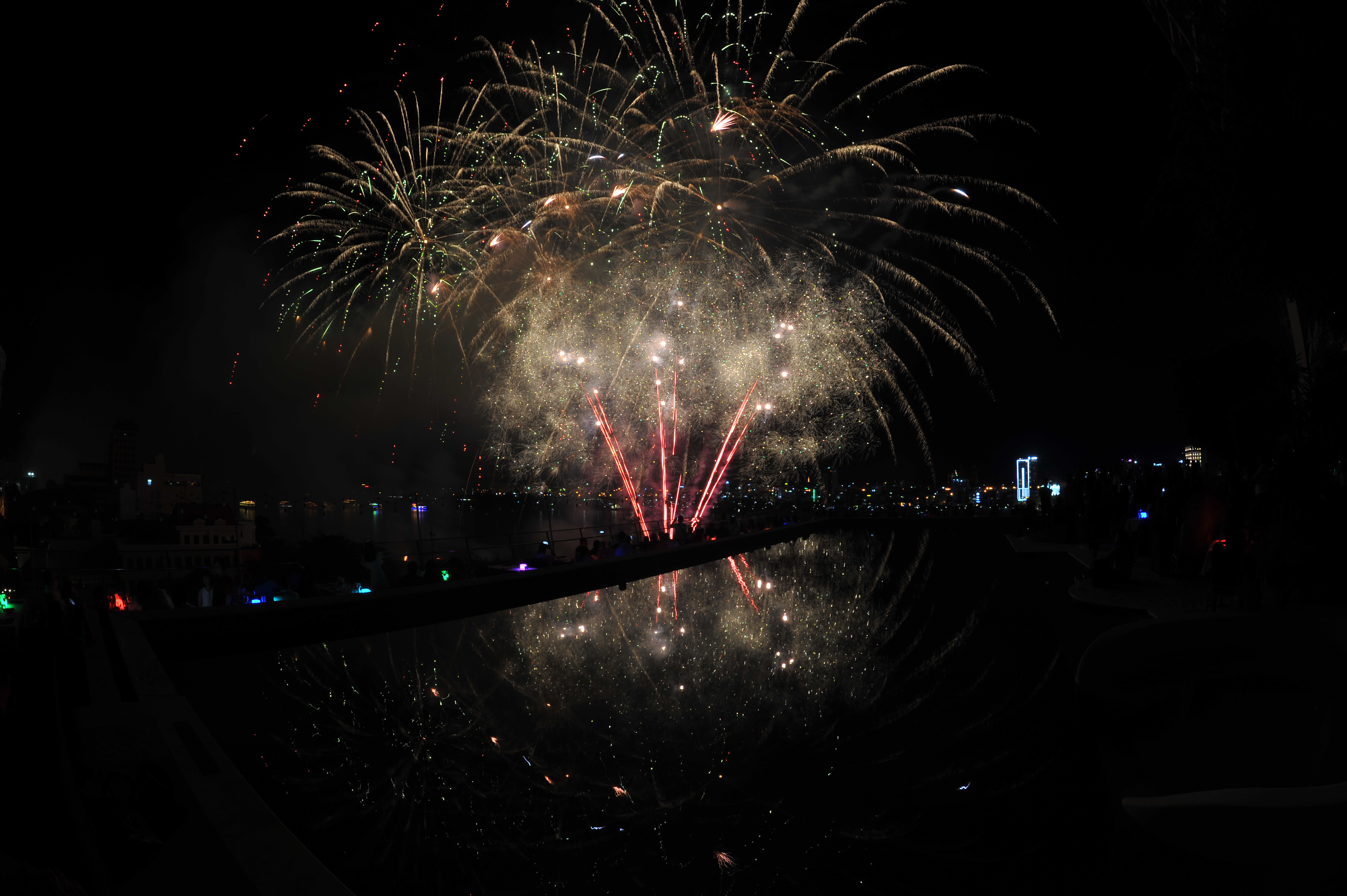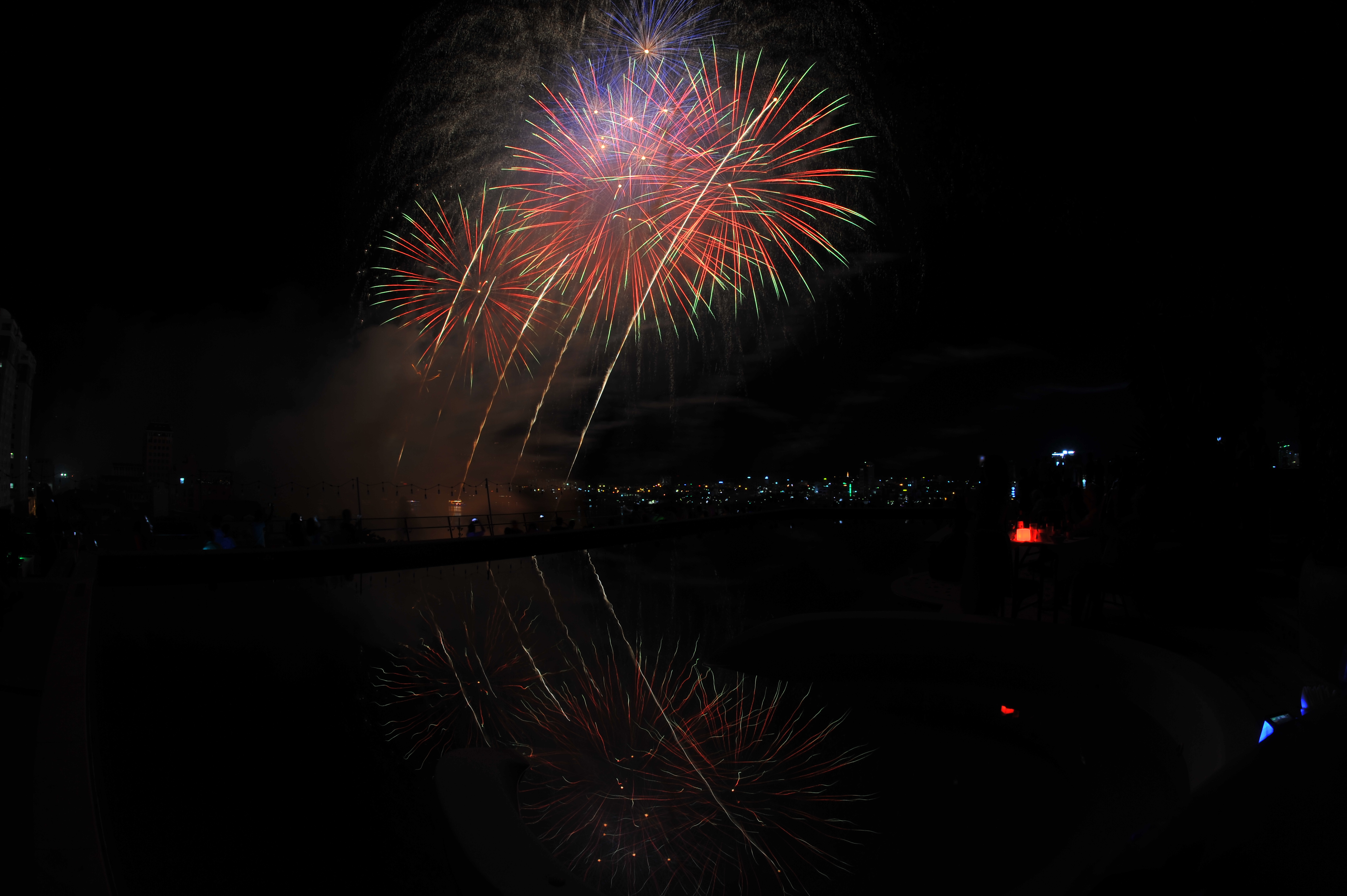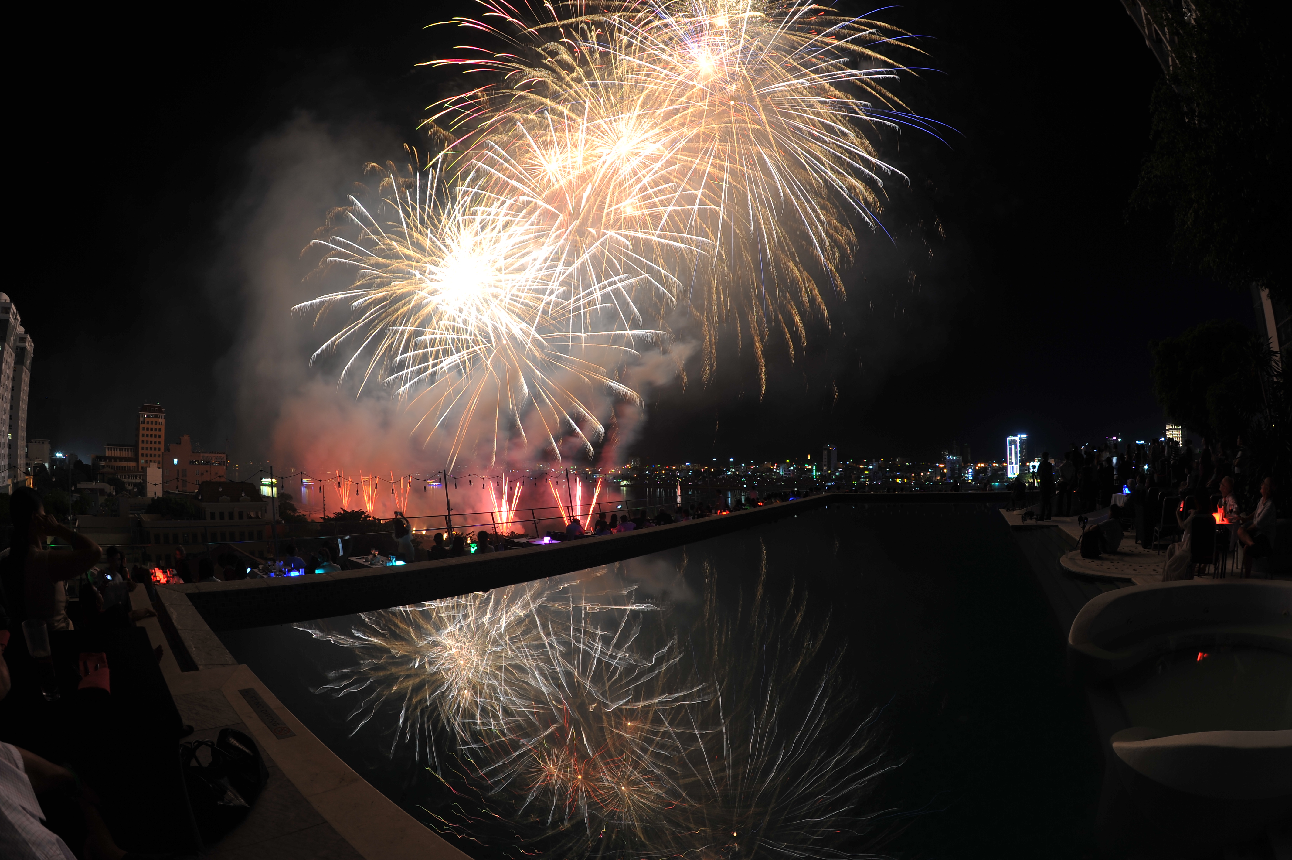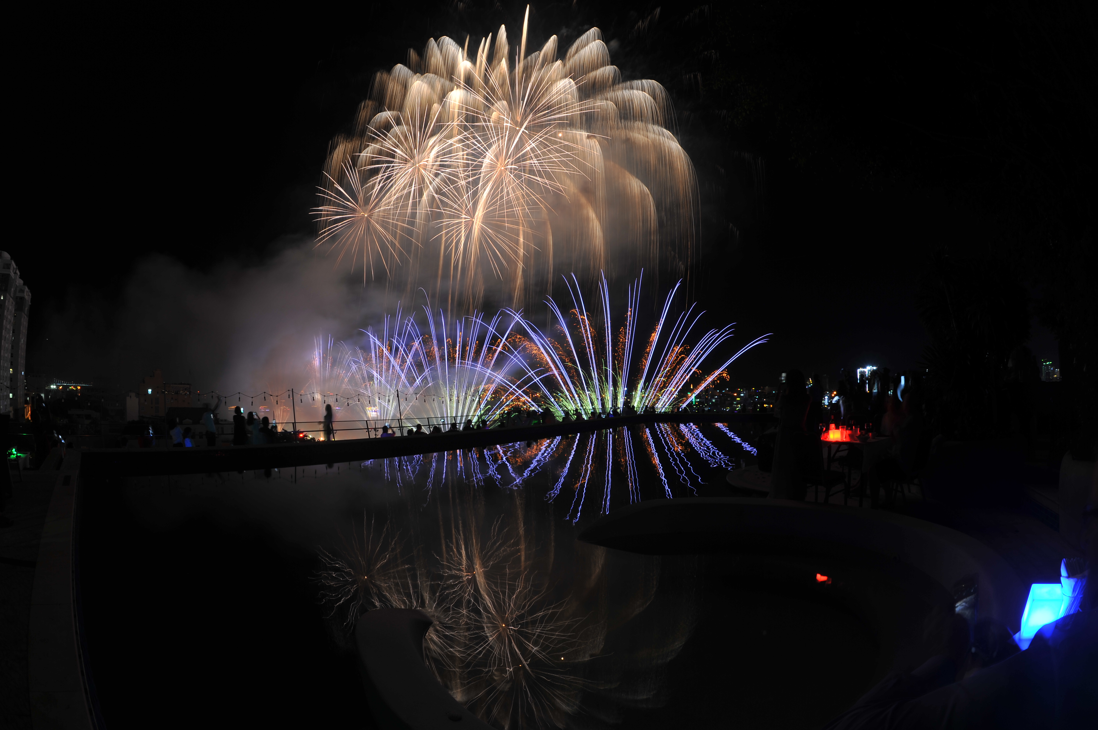 Mãn nhãn với đại tiệc pháo hoa trong đêm khai mạc khi nhìn từ hồ bơi khách sạn cao nhất Đà Nẵng.