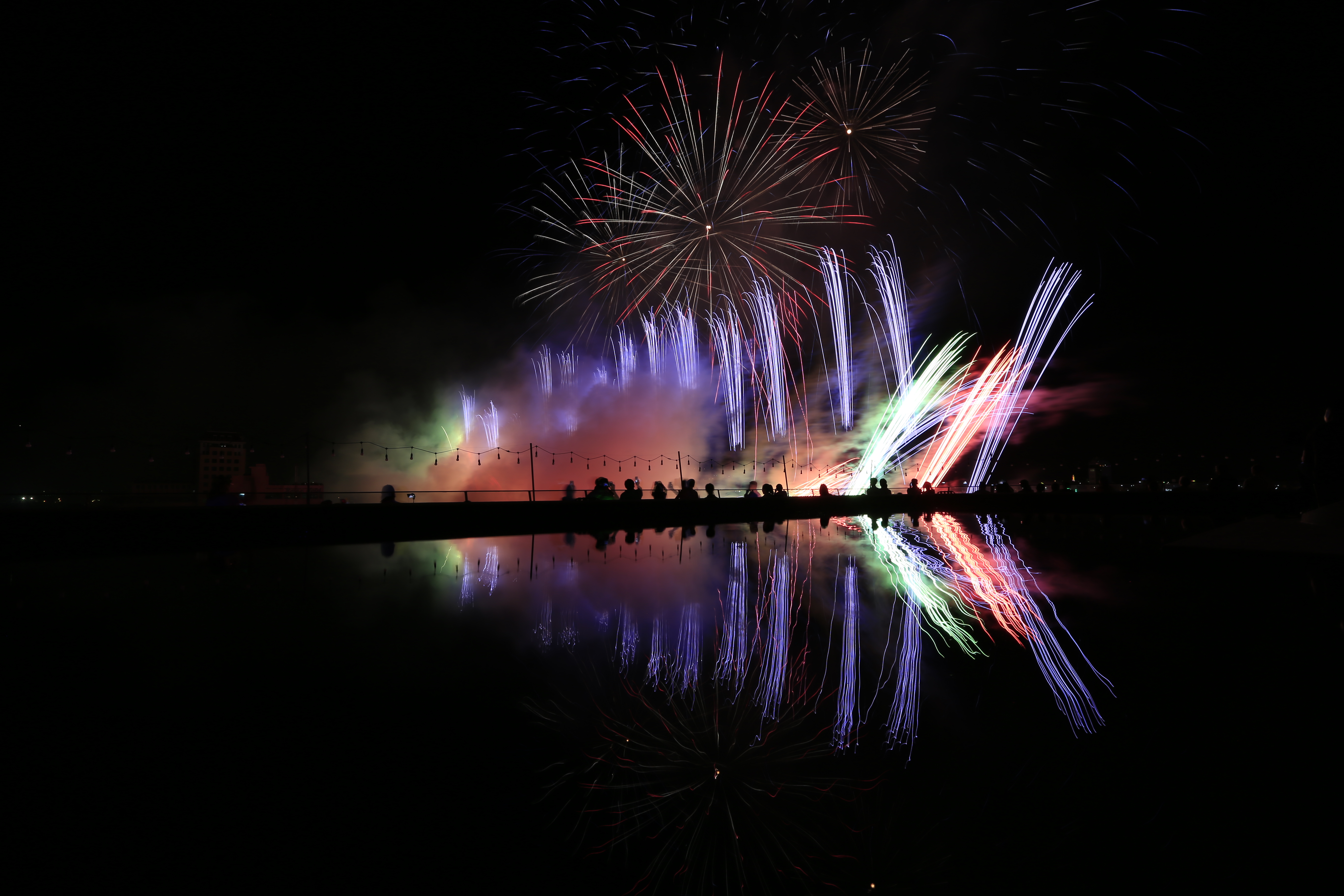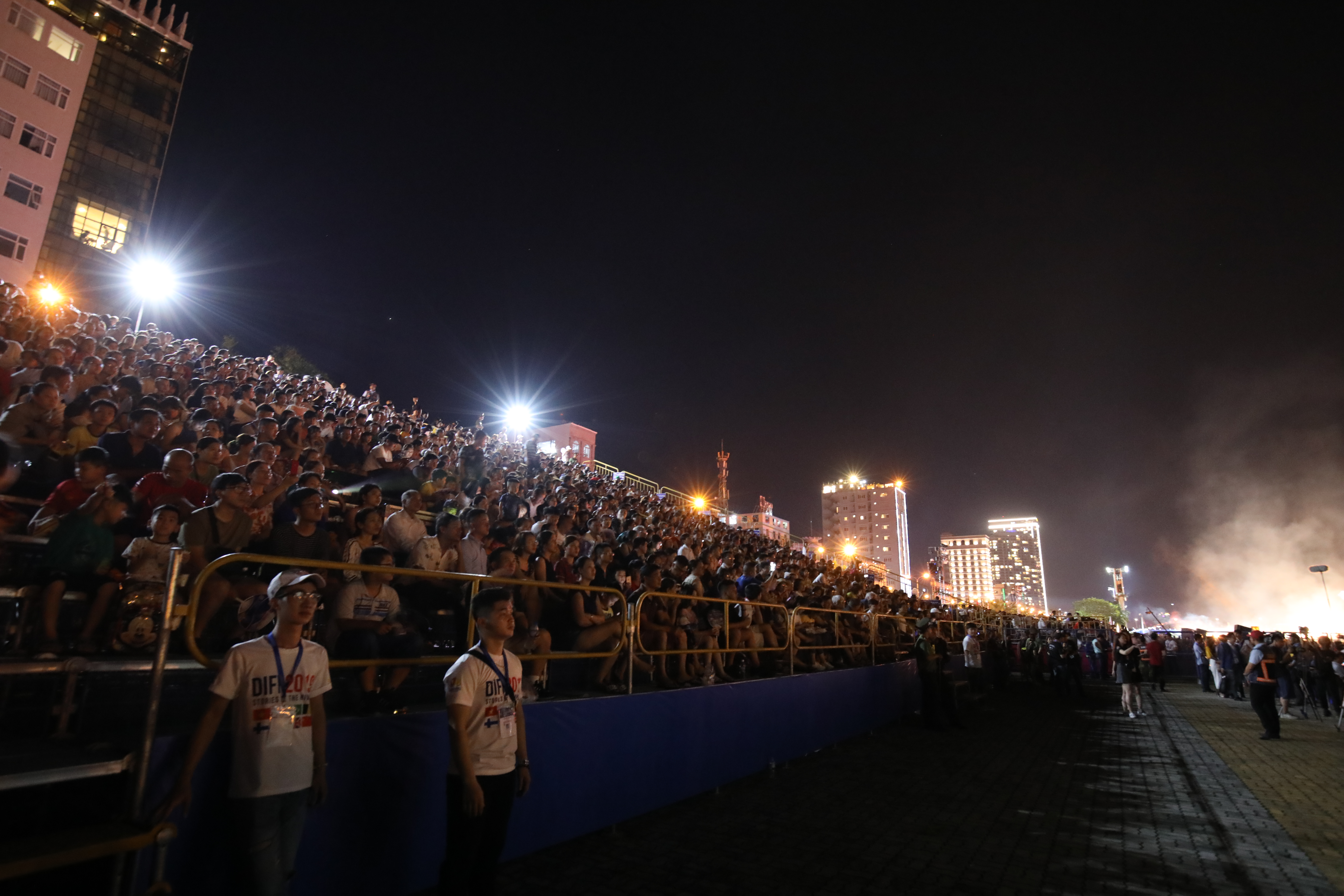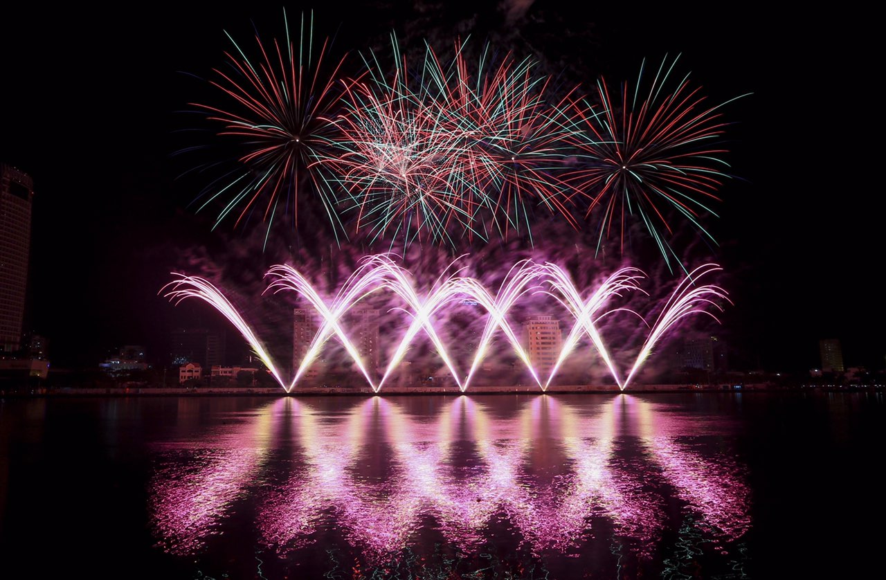 Với chủ đề “Đôi bờ huyền thoại”, đội chủ nhà mang đến 4.320 quả pháo cùng nhiều hiệu ứng đẹp mắt như vỏ sò, chùm bánh pháo, xòe quạt, nến La Mã…