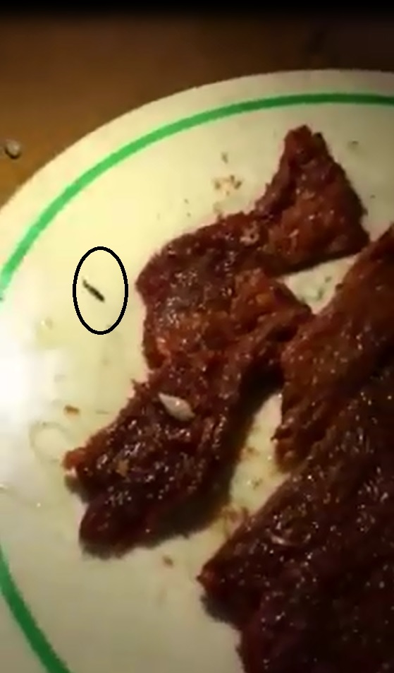 Đoạn video ghi lại cảnh sinh vật lạ bò lổm ngổm trên miếng bò khô thơm ngon.