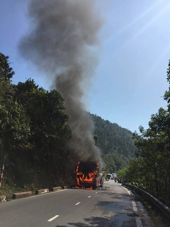 Khoảng 10 giờ sáng 15/2, xe khách BKS: 43B - 025.xx do tài xế Lê Thanh Quốc (SN 1984) điều khiển, chở theo 29 hành khách, chủ yếu là người nước ngoài, lưu thông theo hướng Đà Nẵng - Huế. Khi đến gần đỉnh đèo Hải Vân thì chiếc xe bất ngờ bốc cháy dữ dội.