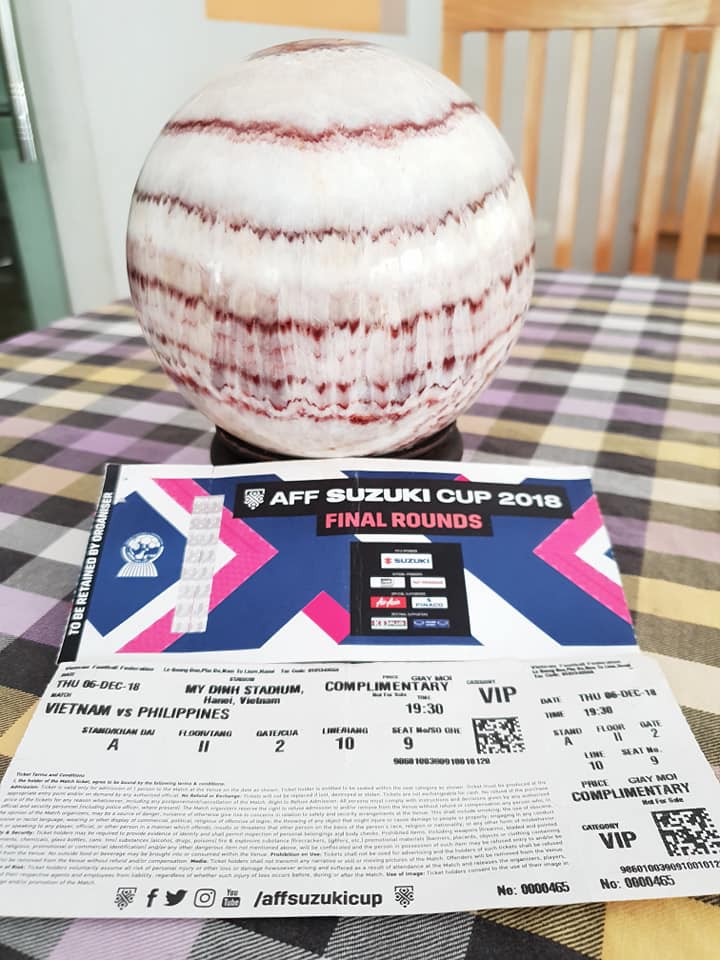 Với những tư vấn quý giá, anh Kiều Hữu Thọ đăng trên trang cá nhân về việc được tặng tấm vé mời xem trận đấu quan trọng của tuyển Việt Nam tối 6/12.