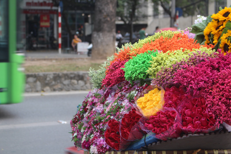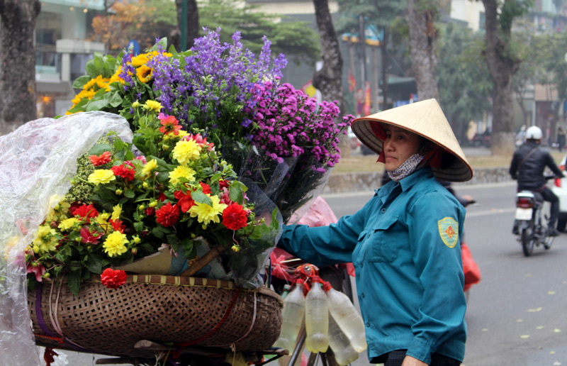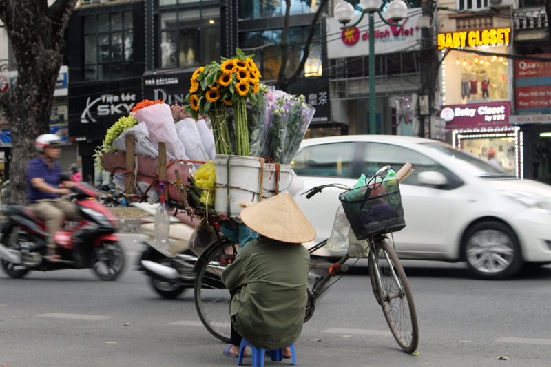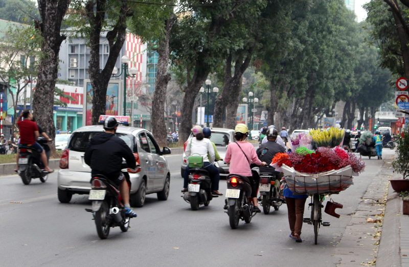 Trên những con “ngựa sắt” cà tàng, họ chở những thúng hoa lớn, cao vượt đầu người qua những con phố lớn, mặt đường thông thoáng và đông người qua lại như Giảng Võ, Nguyễn Chí Thanh, Láng Hạ, Phan Đình Phùng,…