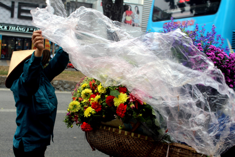 Trời nắng hay mưa, các chị đều phải che chắn sợ hoa hỏng
