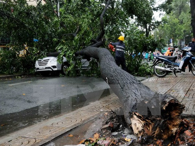 Vụ tai nạn xảy ra vào thời điểm mưa to gió lớn, đường sá trơn trượt. Cây thông đổ ra đường nằm bên trái hướng lưu thông của mẹ con chị Hà; đường kính thân cây khoảng 40cm.