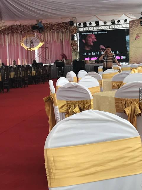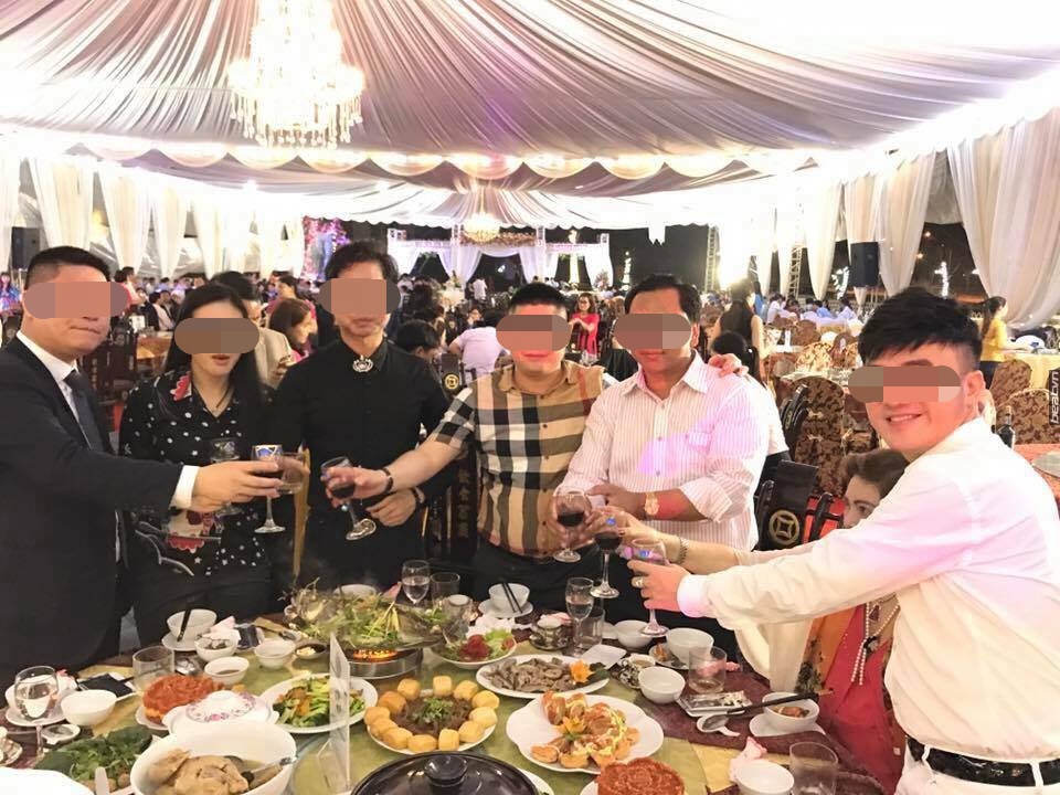 Đám cưới được tổ chức bên một toà lâu đài khủng với rạp cưới được trang hoàng lộng lẫy, khách mời biểu diễn là các ca sĩ nổi tiếng như Ngọc Sơn, Dương Ngọc Thái, Tuấn Hưng, Lưu Chí Vỹ… Dàn siêu xe cùng thực đơn là những món đắt tiền khiến nhiều người không khỏi choáng ngợp.