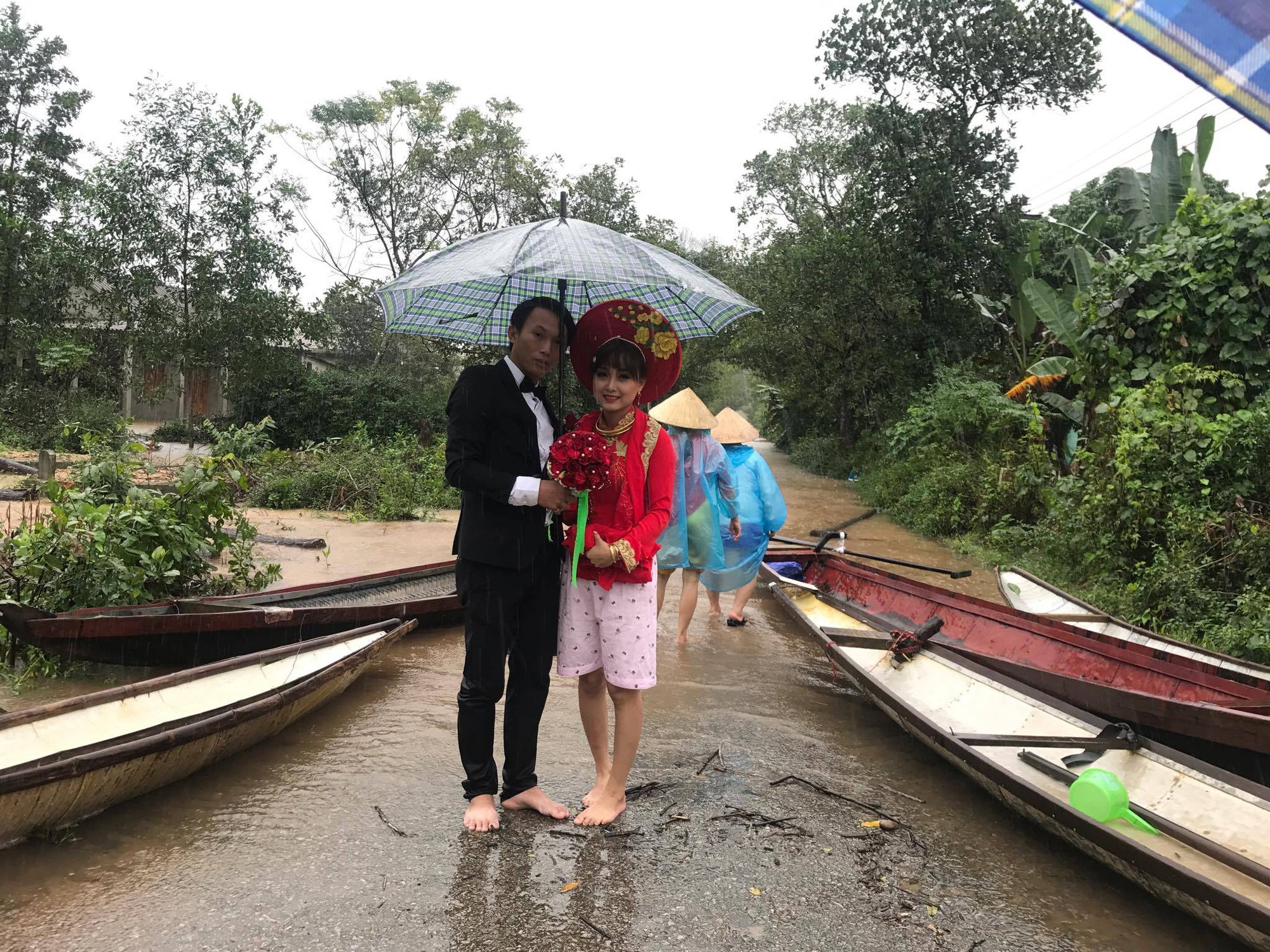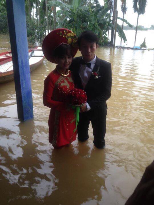 Giữ tình hình mưa lũ càn quét, bốn bề mênh mông nước ngập, đám cưới của nhiều cặp đôi vẫn diễn ra dù gặp vô vàn khó khăn. Một trong số đó là hôn lễ của cặp đôi Dương Thúy Lâm (thôn Trạch Tã) và chú rể là Trần Văn Bình (thôn Phong Thu) diễn ra vào ngày 21/11 tại huyện Phong Điền (Thừa Thiên-Huế).