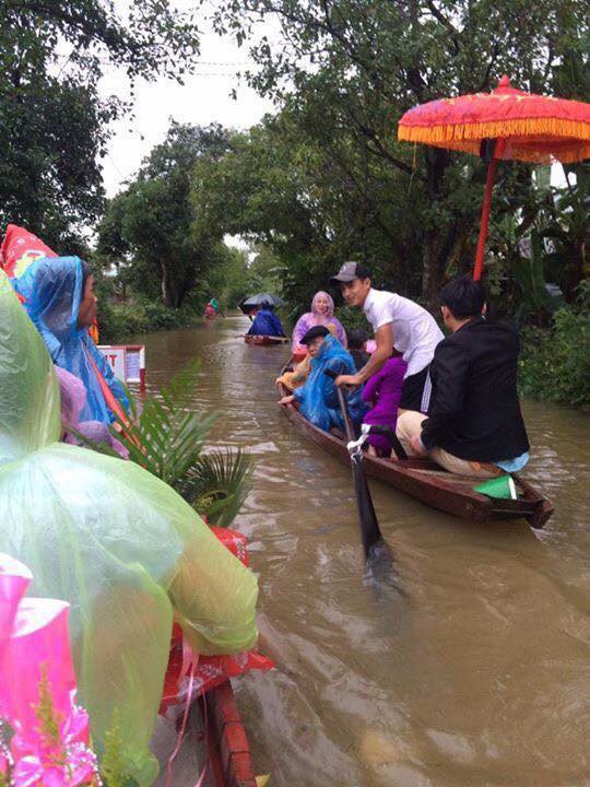 “Nhà cô dâu ngập nặng, đám cưới diễn ra cực khó khăn nhưng may mắn nhà trai ở thông Phong Thu không bị ngập. Đoàn đưa dâu chỉ vất vả nhất lúc di chuyển từ nhà gái sang nhà trai vì đường đi lối lại đều mênh mông nước“.