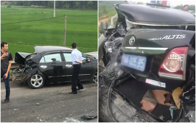 Theo một đại diện ban quản lý cao tốc Nội Bài - Lào Cai cho biết, vào thời điểm xảy ra vụ việc, chiếc xe biển xanh đang dừng xe thực hiện nhiệm vụ, theo hướng Nội Bài đi Lào Cai thì bất ngờ bị chiếc xe container đâm từ phía sau.