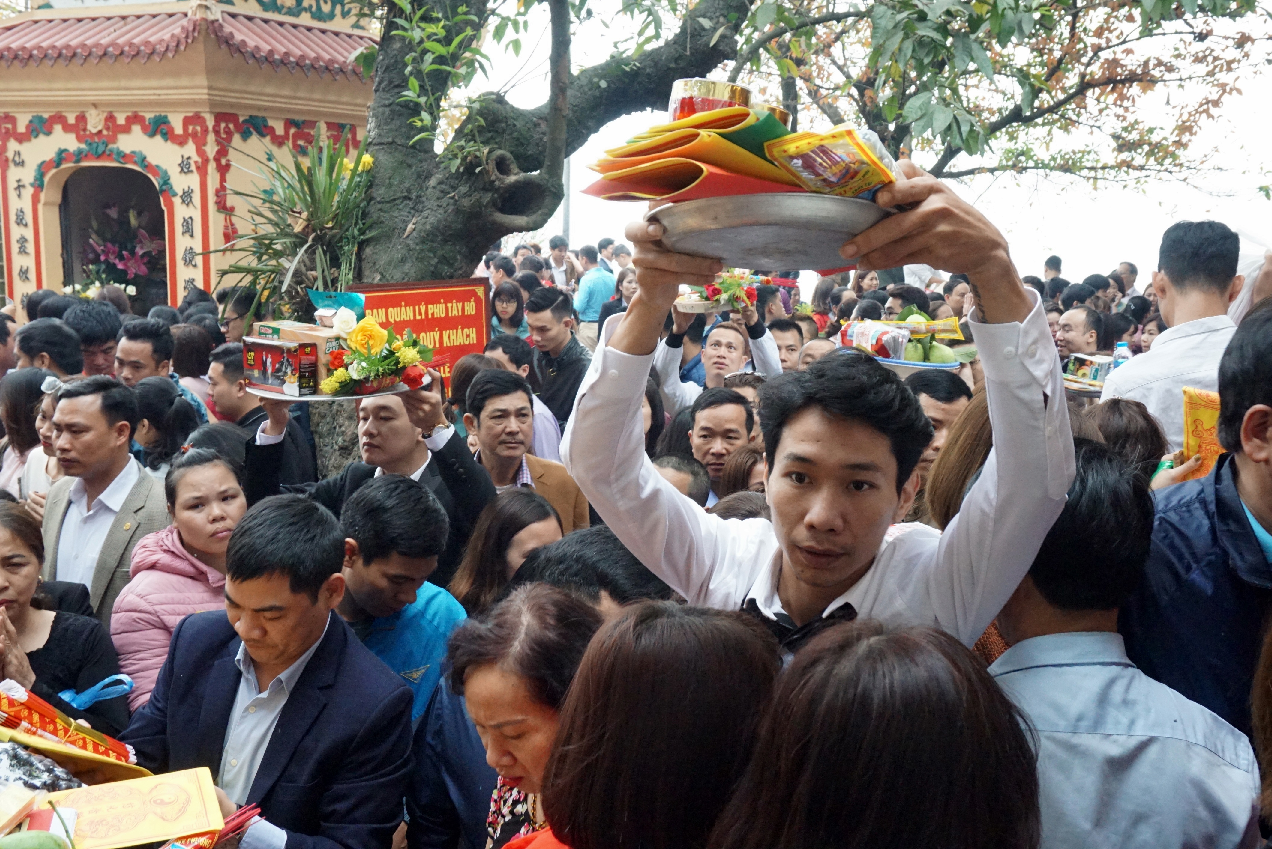 Do số lượng đồ lễ quá lớn nên lực lượng bảo vệ phủ Tây Hồ ít phút lại lui tới thu dọn.