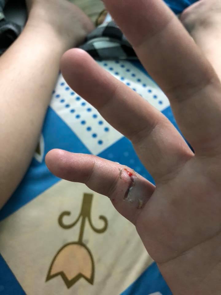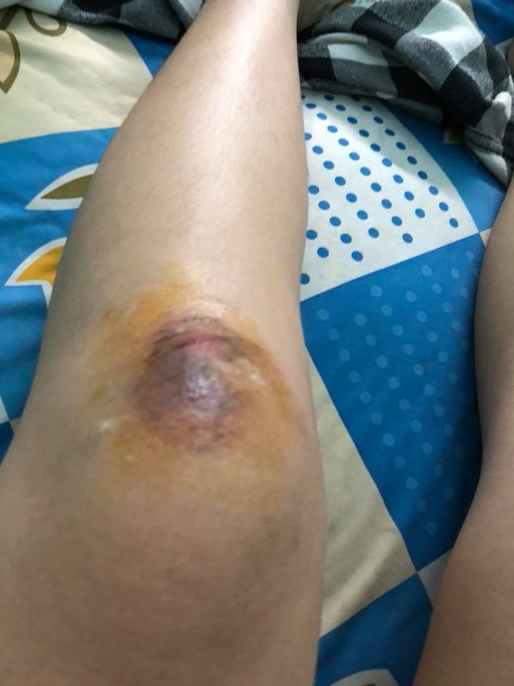 Chủ nhân chú chó bị trầy xước. Ảnh: Dương Huỳnh.