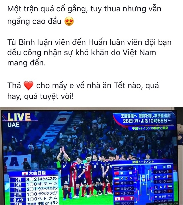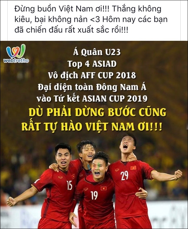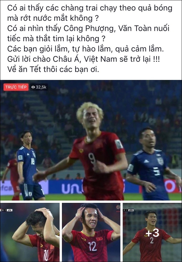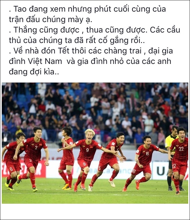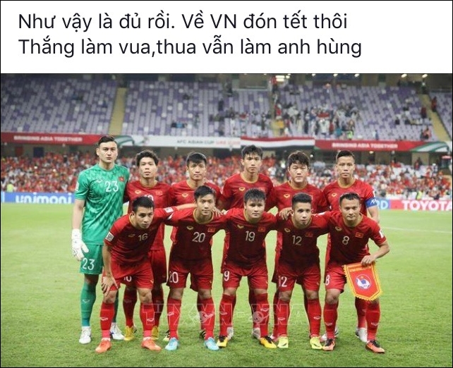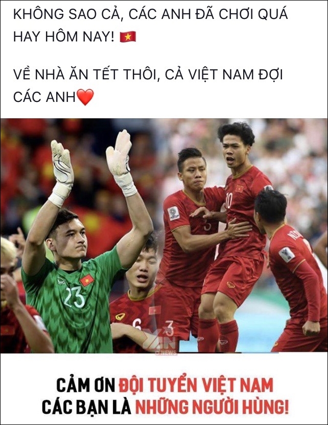 Những lời động viên của fan hâm mộ đến các cầu thủ của đội tuyển Việt Nam. Các anh đã gắng hết sức rồi, về ăn Tết thôi!