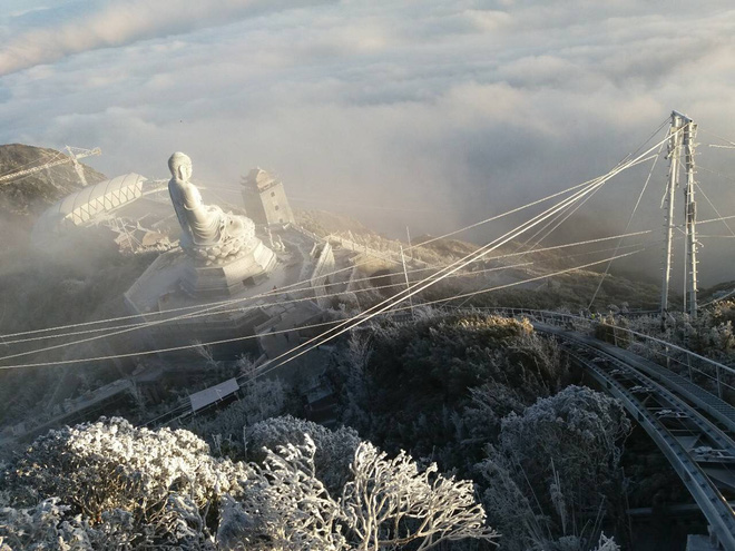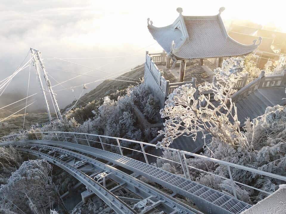 Hôm qua (19/12), cộng đồng mạng khá bất ngờ khi thấy dân phượt chia sẻ trên các trang MXH loạt ảnh về khung cảnh Fansipan. Do nhiệt độ hạ thấp, “nóc nhà Đông Dương” và cánh rừng Hoàng Liên trên cao bị băng tuyết bao phủ. Cảnh tượng khắp nơi đều hiện lên trong màu trắng xóa, kéo dài đến bất tận khiến nhiều người tưởng như, họ đang xem những bức ảnh chụp lại cảnh mùa đông ở châu Âu xa xôi. Nhiều người còn ca ngợi, đỉnh Fansipan đã “trở mình”, thay đổi diện mạo mới, đẹp đẽ, lộng lẫy như cảnh trong phim Hollywood.