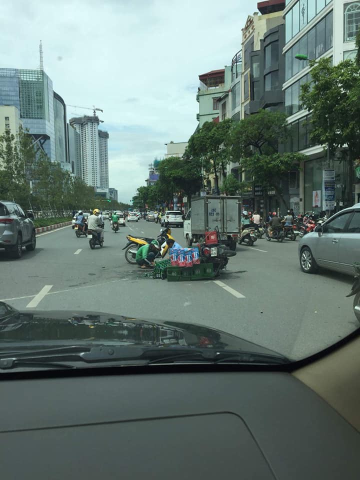 Theo như những người hóng tin, bức ảnh ghi lại cảnh tai nạn vào trưa hôm qua trên phố Trần Duy Hưng, Hà Nội. Và hai nhân vật trong đó chẳng những không cãi nhau như hàng vạn cuộc cãi vã trên đường khác mà chọn ngồi lại cùng nhau, uống một vài chai bia - “nạn nhân” chính trong vụ tai nạn này. Họ vừa tâm sự phải quấy, vừa uống từng chai bia cho đỡ phải bỏ phí.