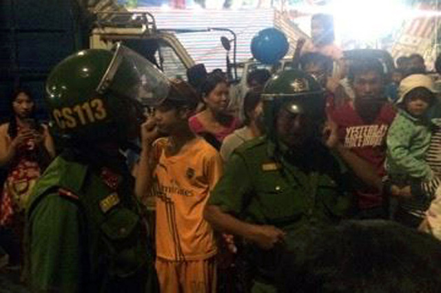 Lực lượng công an tham gia giữ trật tự tại hiện trường - Ảnh: N.Đ.N