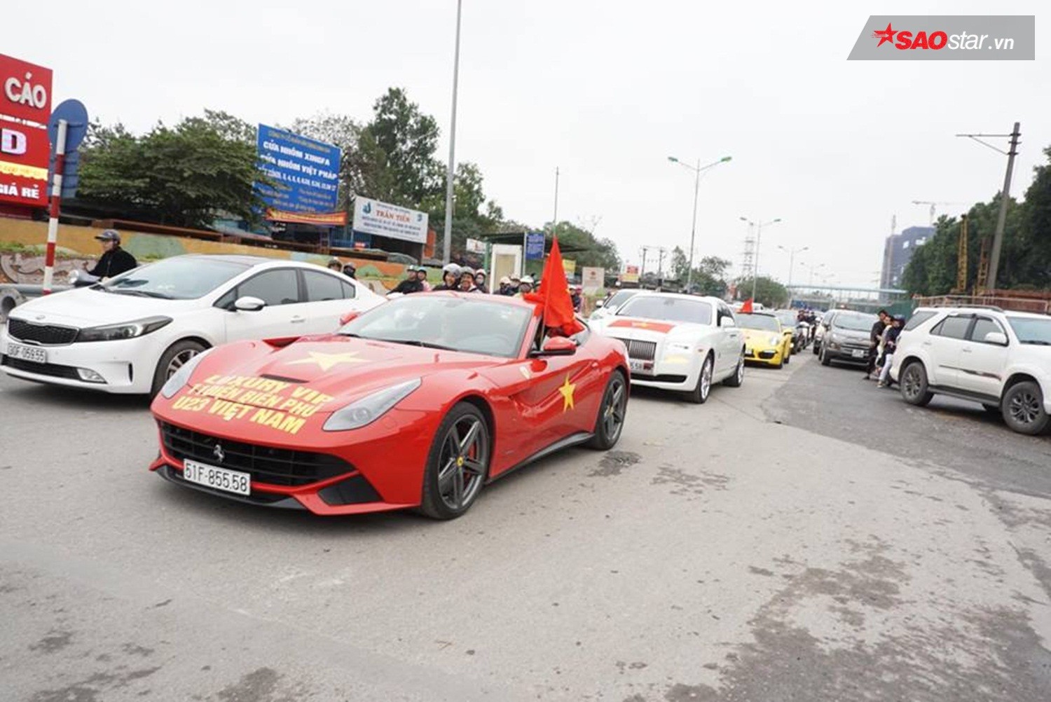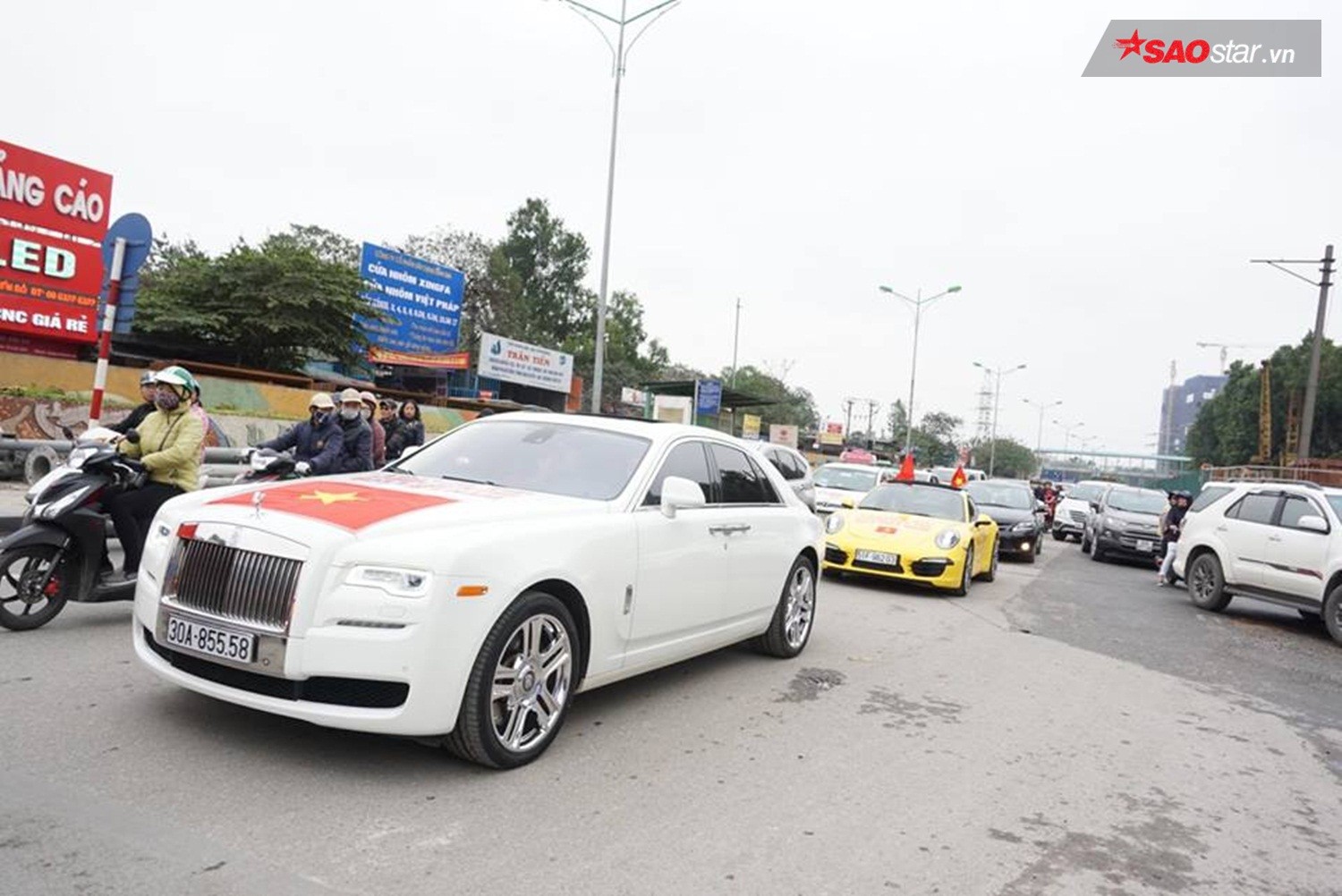 Sáng nay, (28/1), tại sân bay Nội Bài, tất cả mọi công đoạn đã được trang hoàng và chuẩn bị để chào đón thầy trò Park Hang-seo trở về trên chuyên cơ riêng. Ngoài dòng người vời cờ hoa “nhuộm đỏ” Nội Bài và hô vang “Việt Nam vô địch”, dàn siêu xe có mặt để chào đón các cầu thủ cũng thu hút sự chú ý của mọi người. Có thể thấy một loạt xe sang đắt tiền như: Rolls - Royce, Lamboghini, Poscher, Benley, Lexus… gắn cờ đỏ sao vàng đã thực sự tạo nên điểm nhấn.