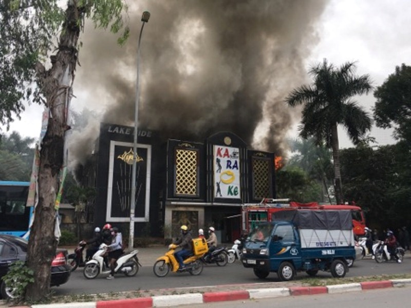 Theo thông tin ban đầu, khoảng 9h ngày 23/11, quán karaoke trên đường Linh Đàm, gần khu vực hồ Linh Đàm xảy ra vụ hỏa hoạn. Ngay lập tức đám cháy nhanh chóng lan rộng, cột khói cao hàng chục mét.