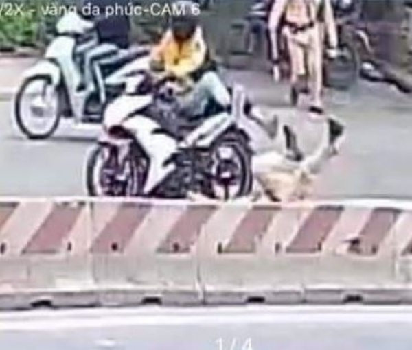 Cú đâm mạnh khiến trung úy CSGT bị thương, nằm bất động trên đường và sau đó được đồng đội cùng người dân đưa đi cấp cứu tại bệnh viện.