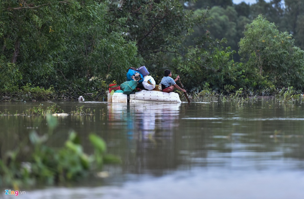 Nhiều hộ dân tranh thủ mưa ngớt vận chuyển đồ đạc đến nơi an toàn. Ảnh: báo Zing
